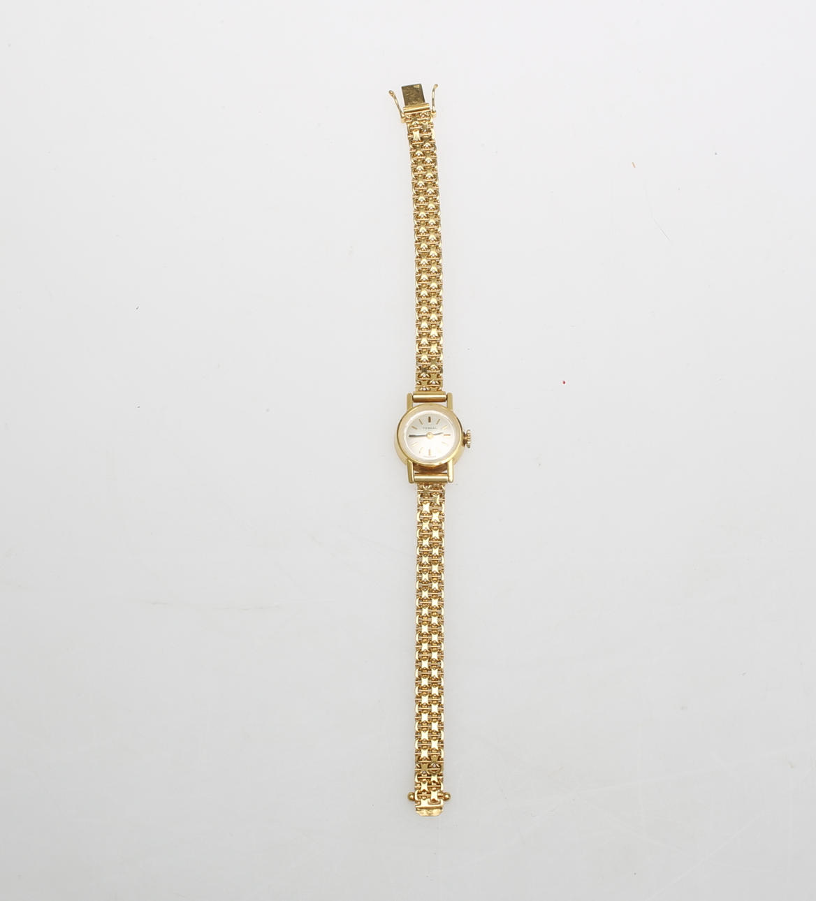 Armband samt klocka 18 k. längd armband 18 cm. Vikt 19 gram.