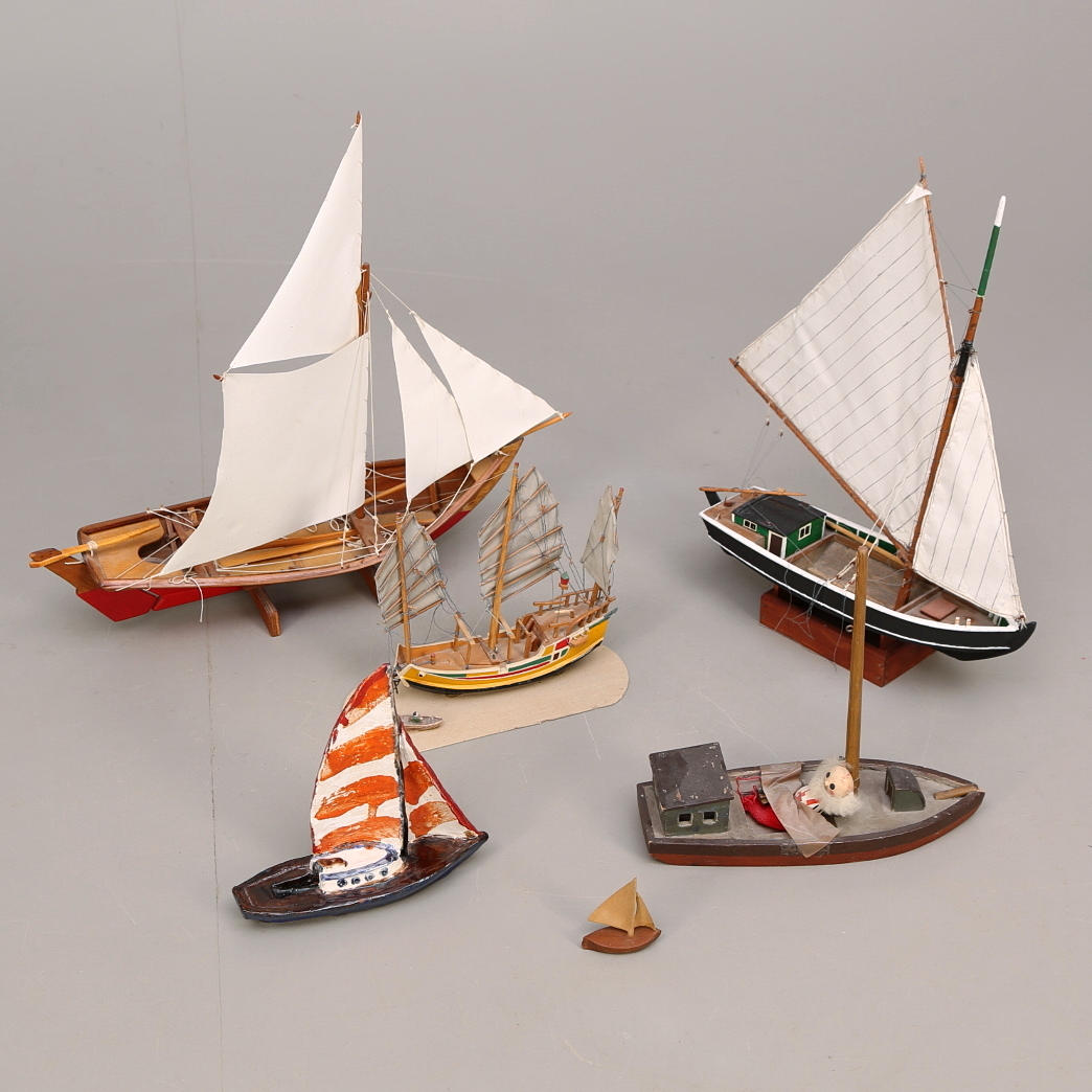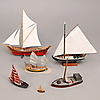 281305. MODELLBÅTAR 6 st, trä, keramik.