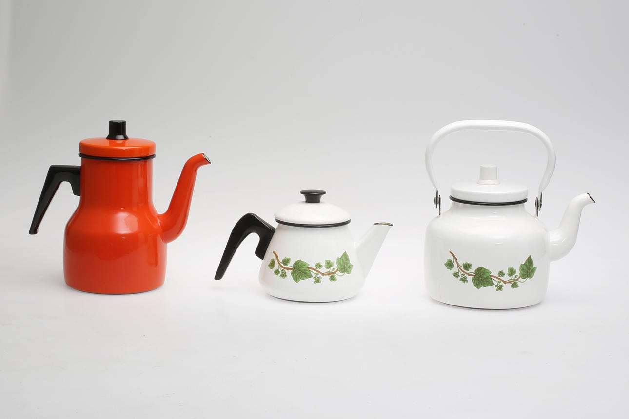 EMALJFÖREMÅL, 3 st, Kaffekannor, Kockums.