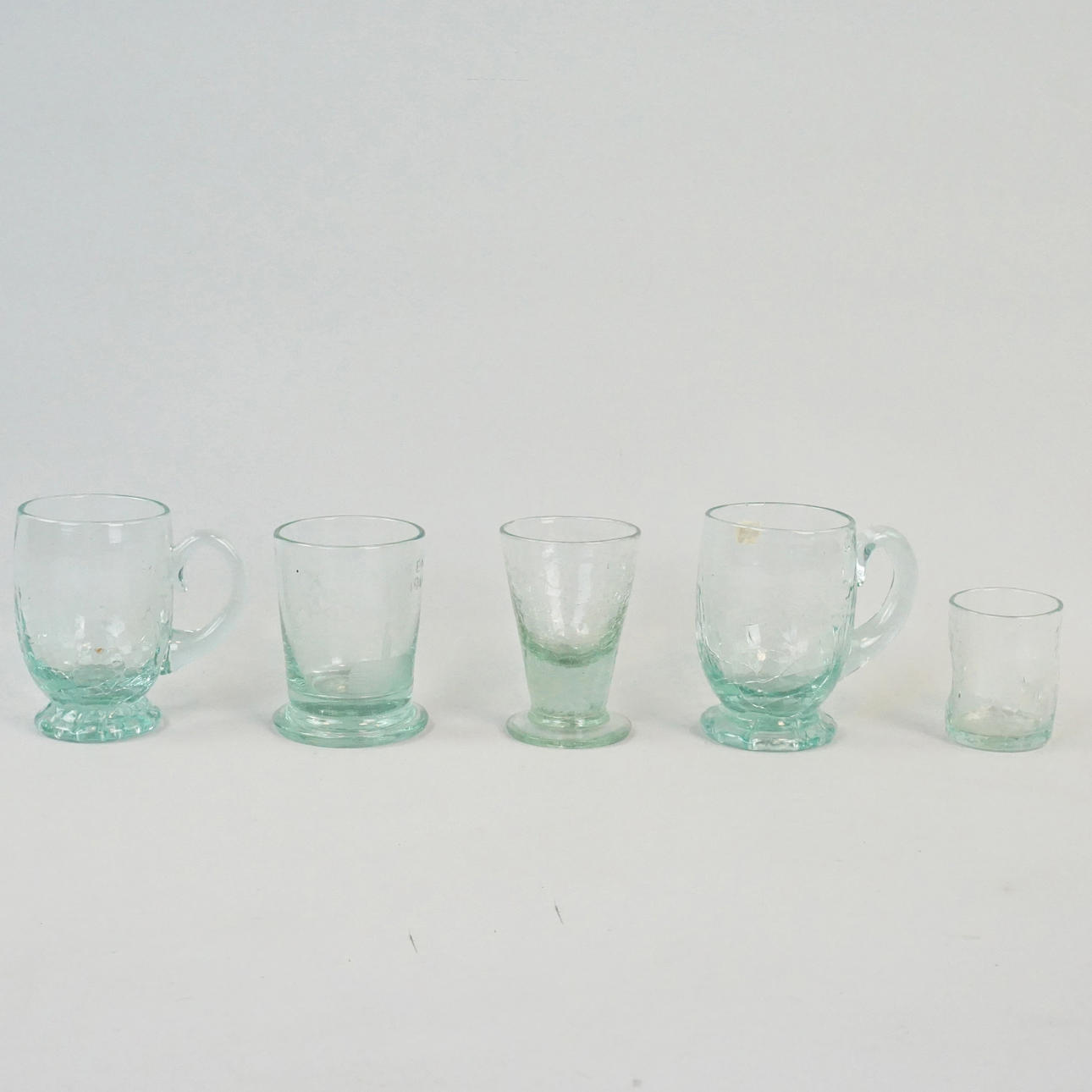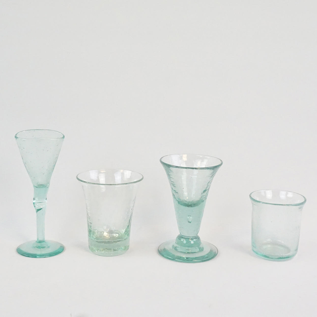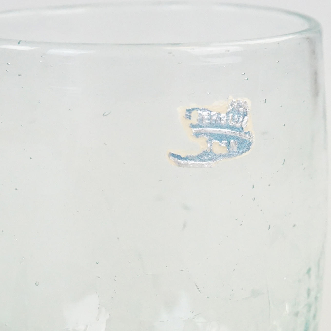 1 st "buckligt" snapsglas, diameter ca 4 cm, höjd ca 5 cm.