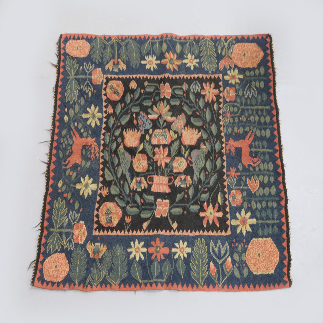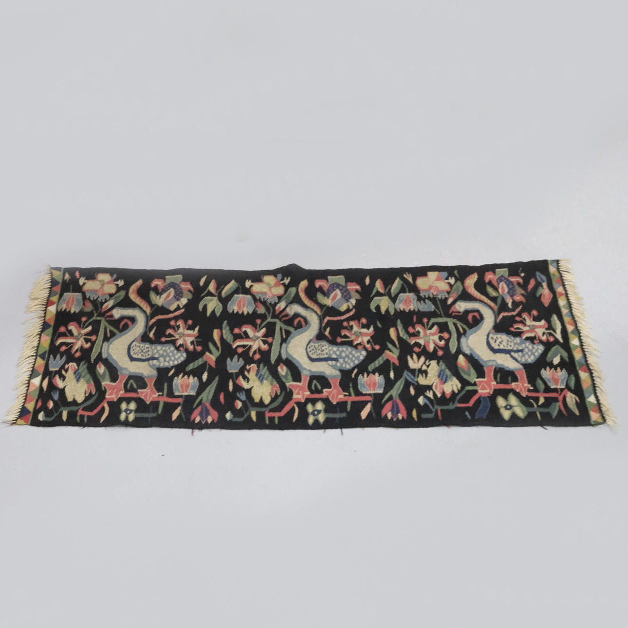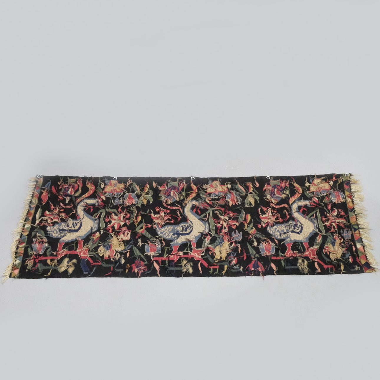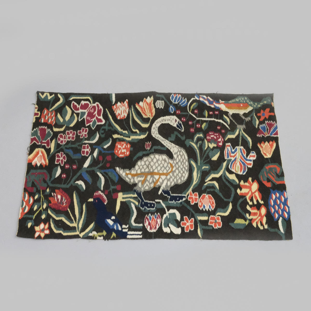 Motiv med fåglar och blomster.