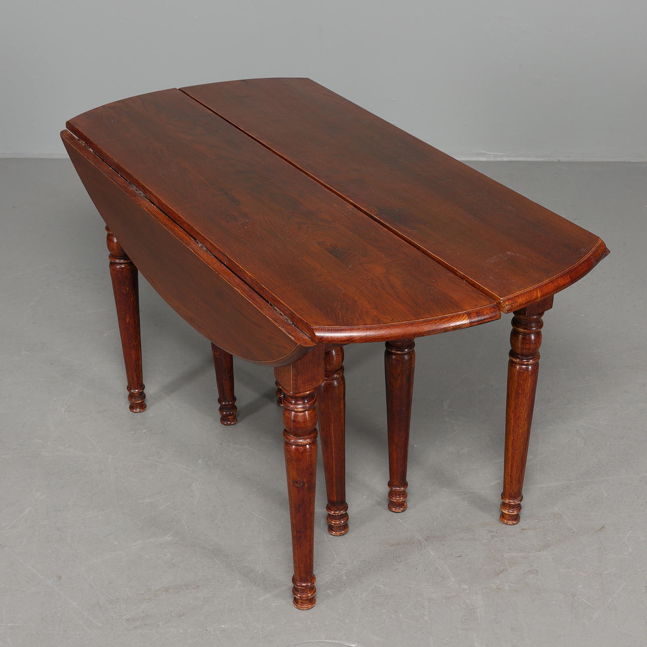 Klaffbord i mörkbetsad massiv ek med 6 iläggsskivor à 39,5 cm.