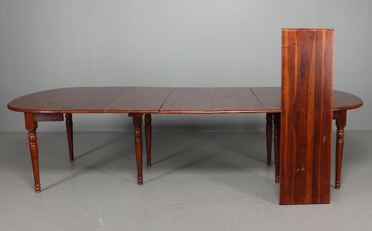 Mått: 135 x 64 cm, höjd 73 cm. Storlek med klaffar utfällda 135 x 90 cm, största mått med 6 ilägg 327 x 135 cm.