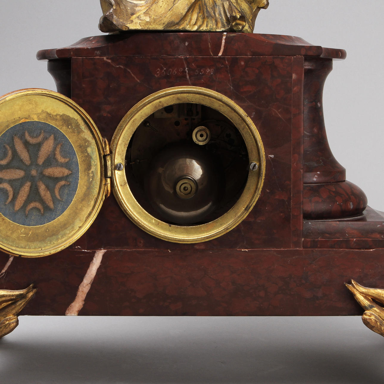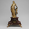 Bronserad metall och sten. Emaljerad urtavla. Höjd 61 cm.