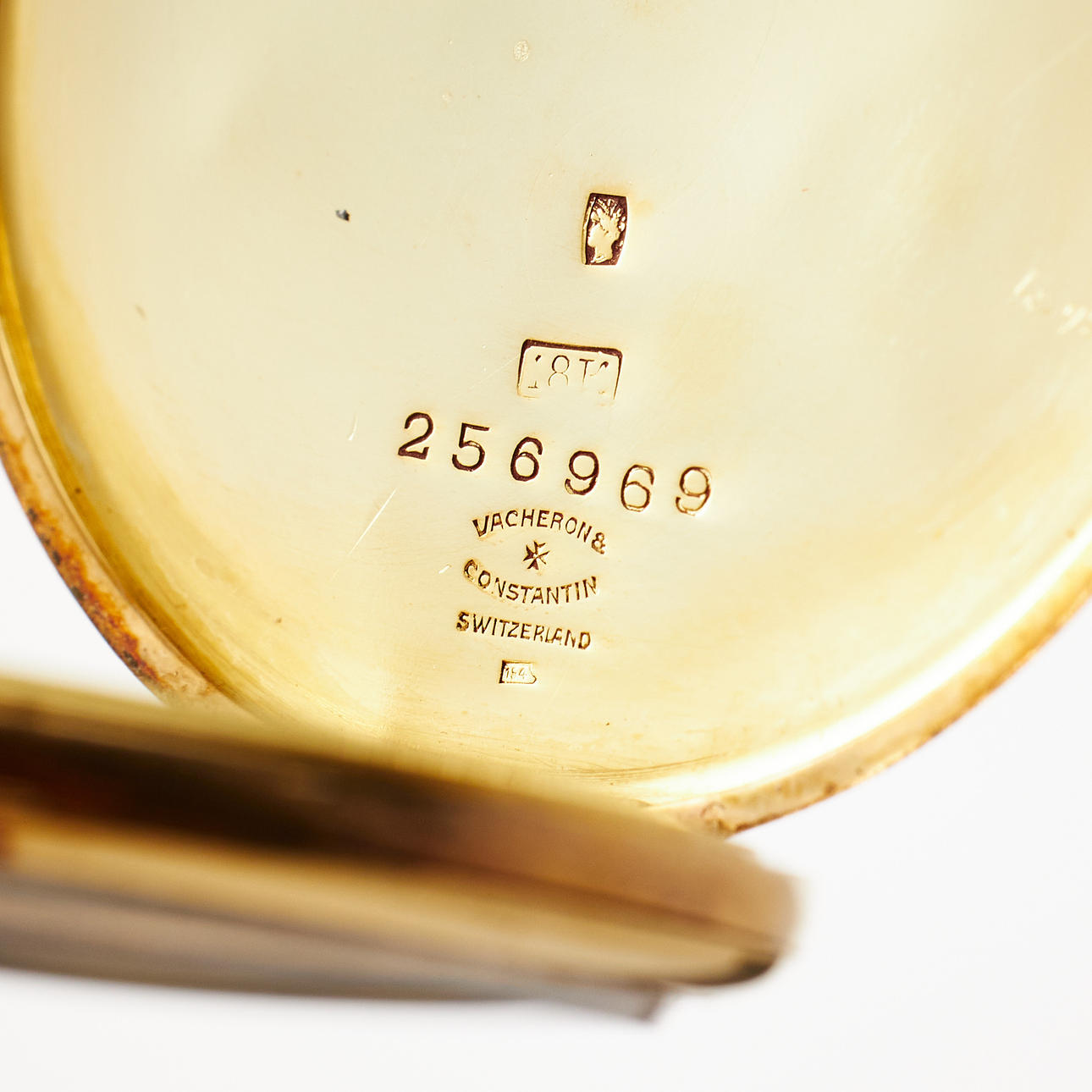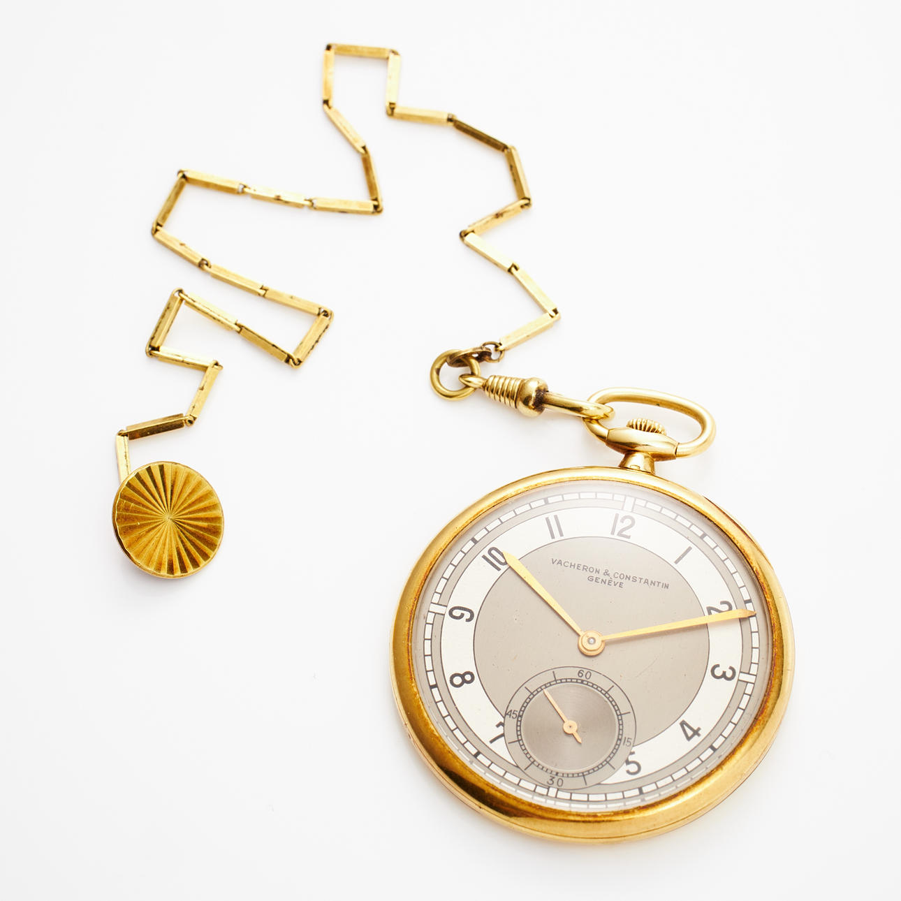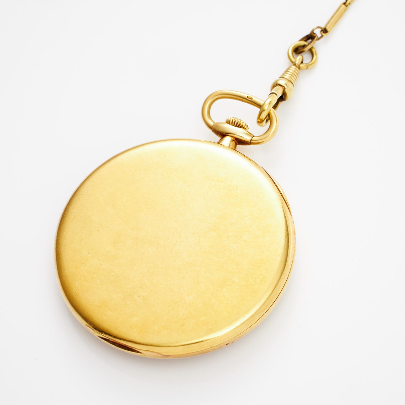 Urtavla med arabiska siffror, boettnr. 256969, verknr. 413322, diameter 44 mm, vikt exkl. klockkedja i gulddoublé 51,5 g.