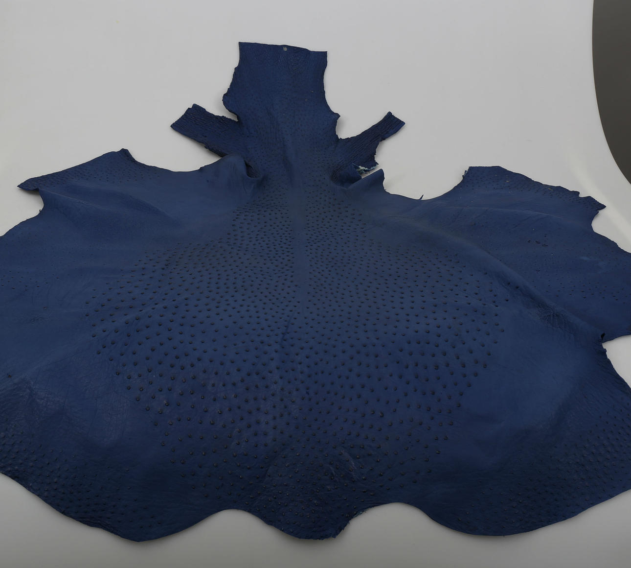 Blått skinn med ett antal knappnåls stora hål.