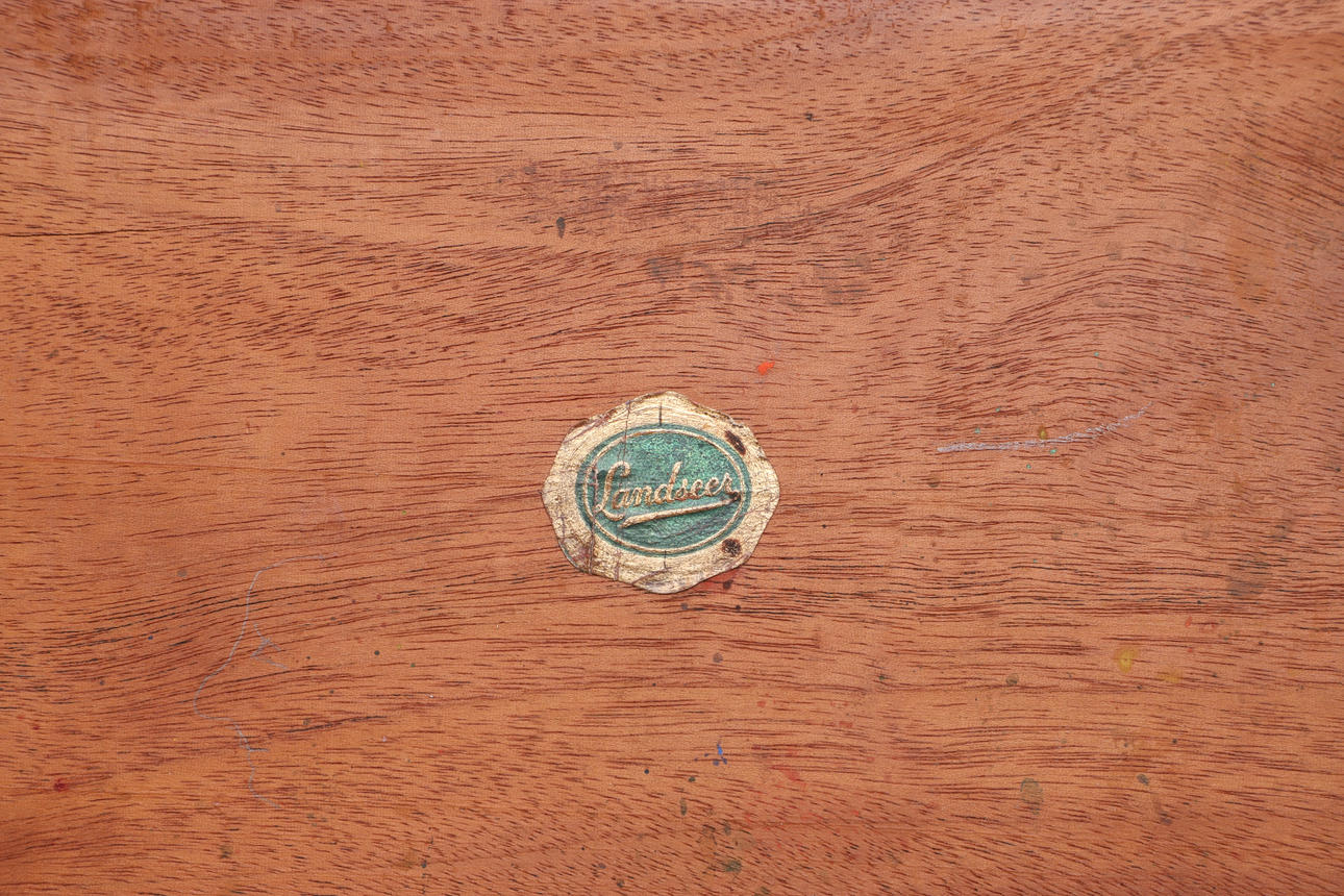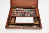 En viktoriansk mahognyfärglåda som innehåller en keramisk vattenbricka, olika fack och ett urval av färger, med pappersetikett"The Students Box of Landseer Water Color, Nej. 24 '29cm bred, 22cm djup, 5.5cm lång.