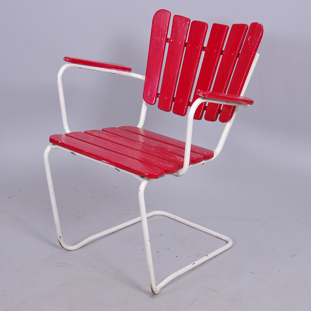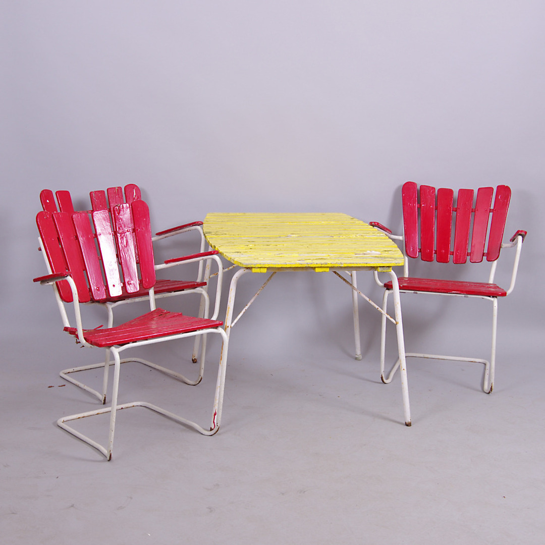 282937. TRÄDGÅRDSMÖBLER, bord samt 3 karmstolar.