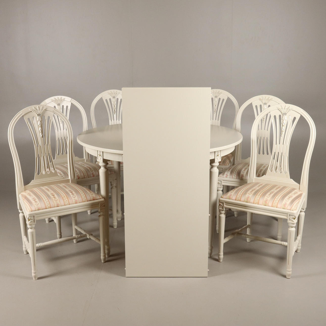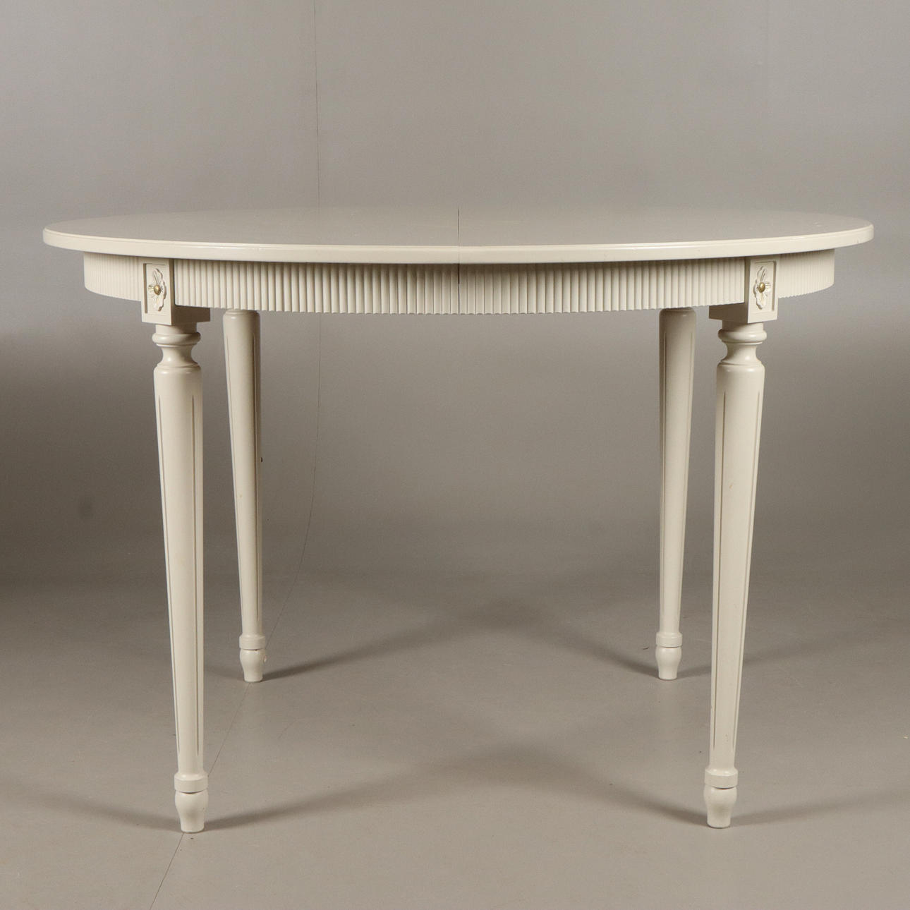 Bord höjd 74 cm, diameter 110 cm 2 i läggsskivor.