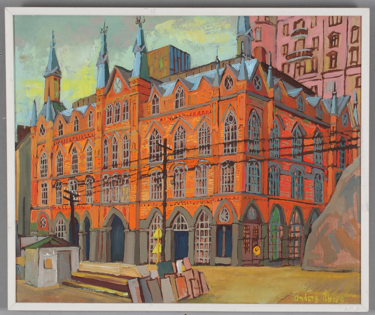 2831246. ANDERS ÅBERG. Stadsbild, tempera på duk, signerad.