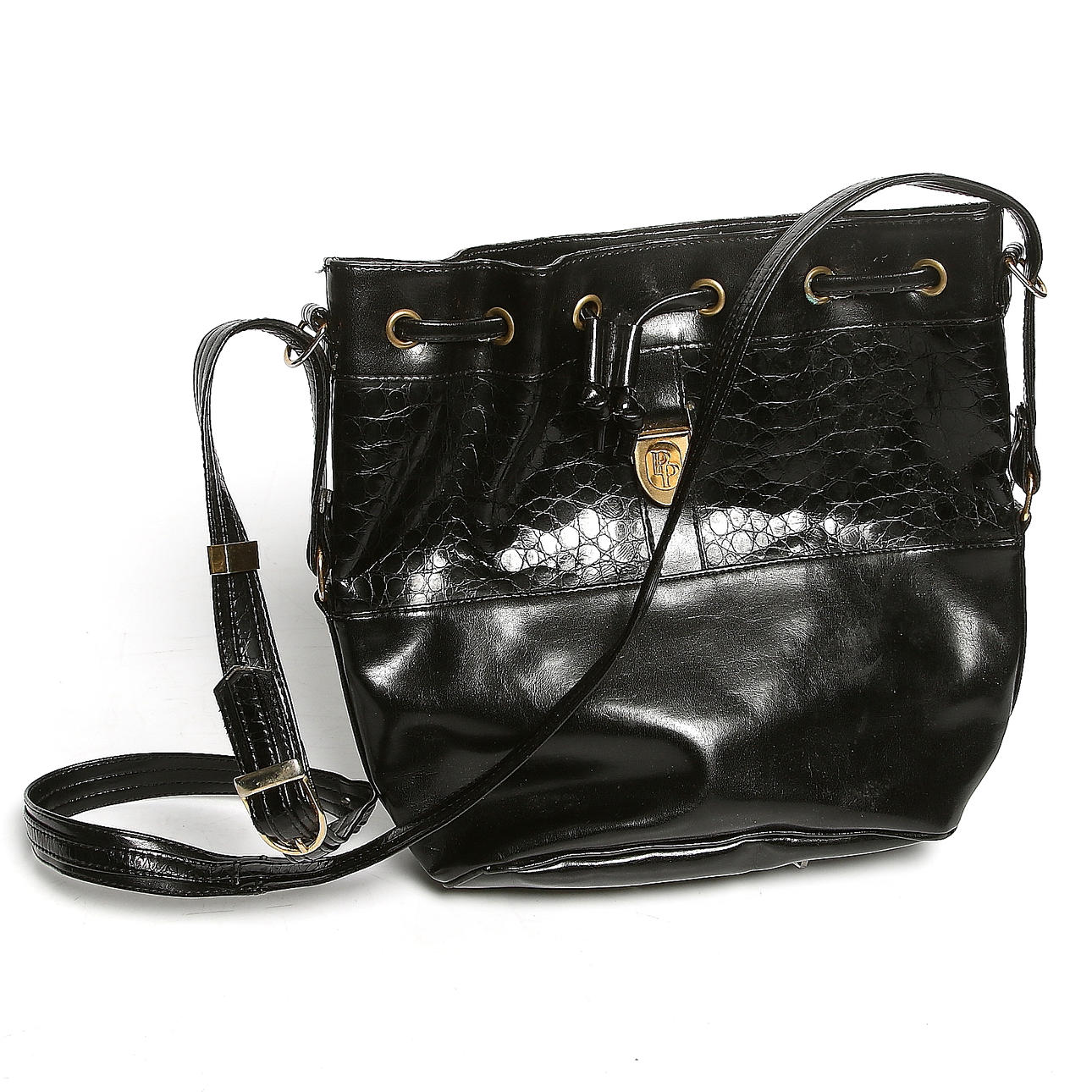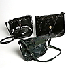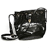 Bagmodell. Ställbara axelremmar med spännen. Mocka samt lack.