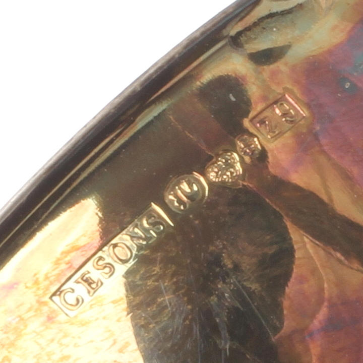 Bland annat punschmuggar, cigaretteetui, skedar och manschettknappa. Total vikt ca 935 gram.