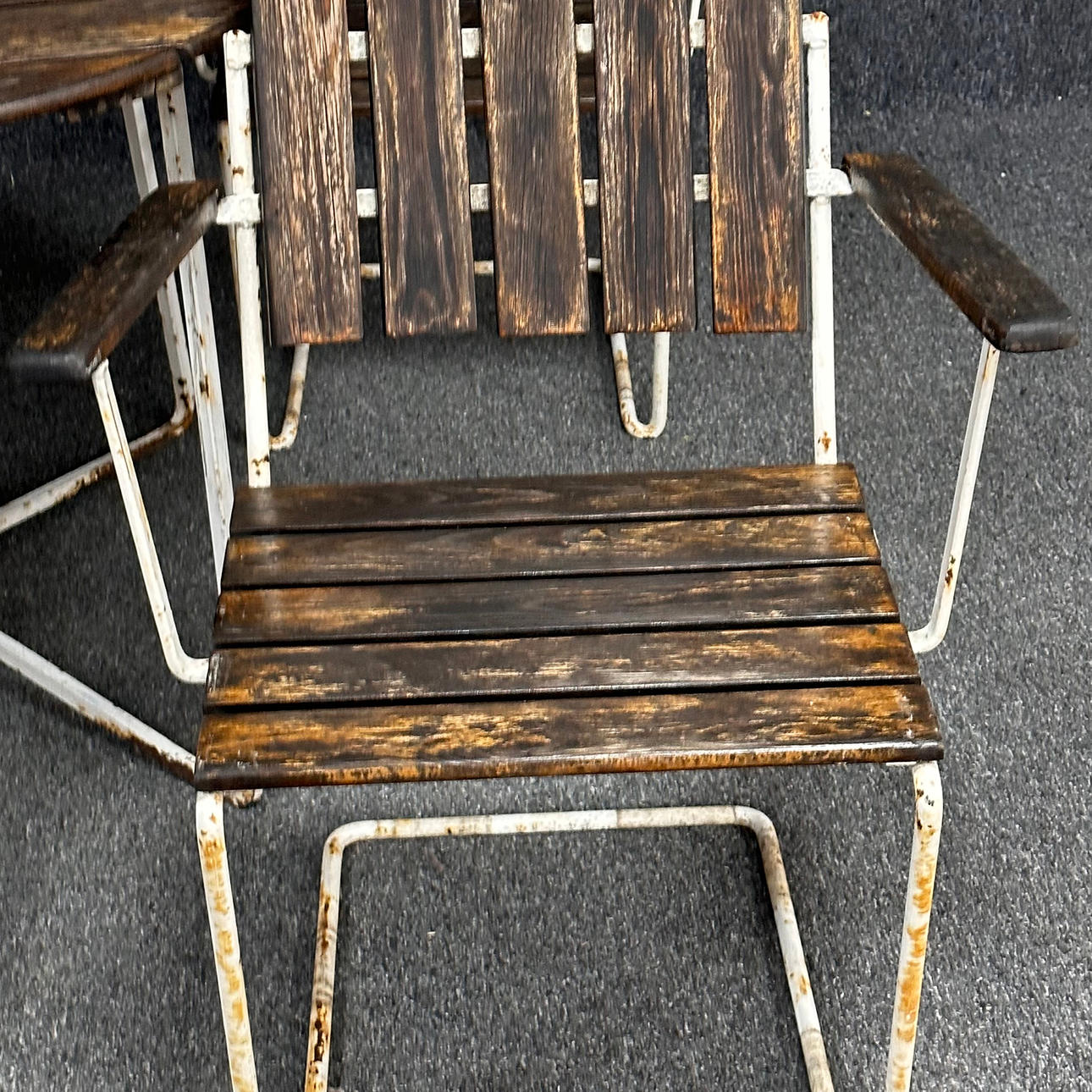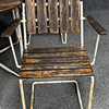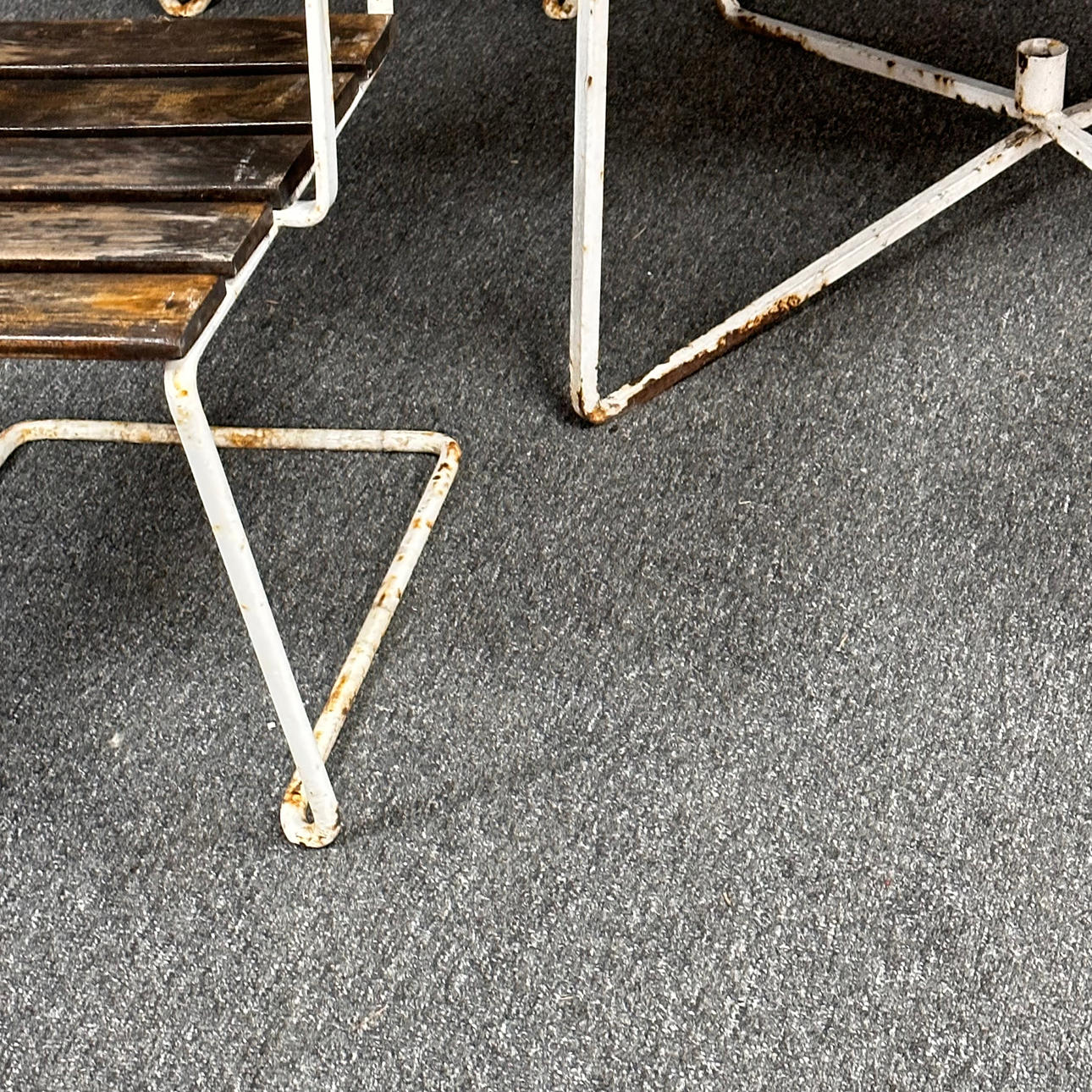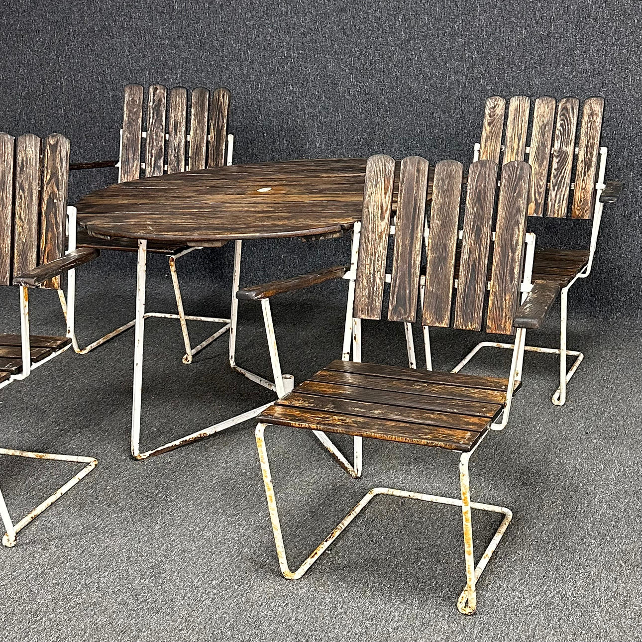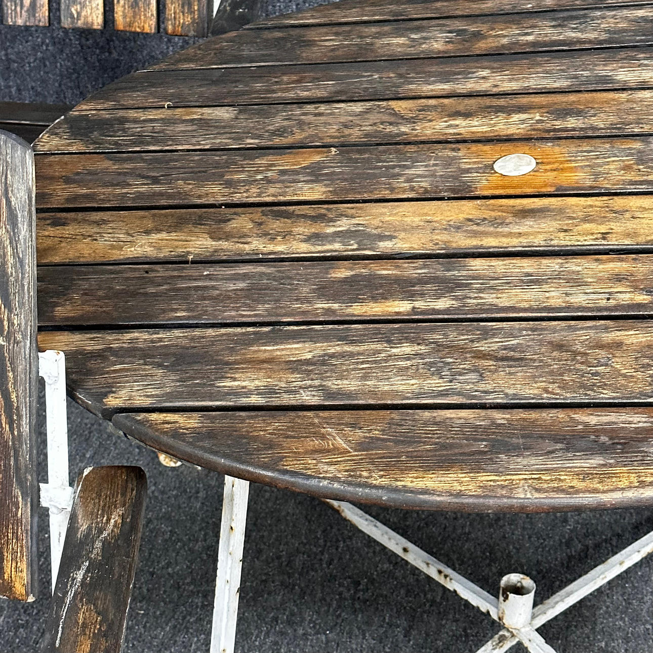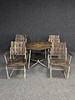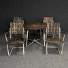 Bord, diameter 100 cm, höjd 70 cm. Stolar, höjd 85 cm, sitthöjd 40,5 cm.