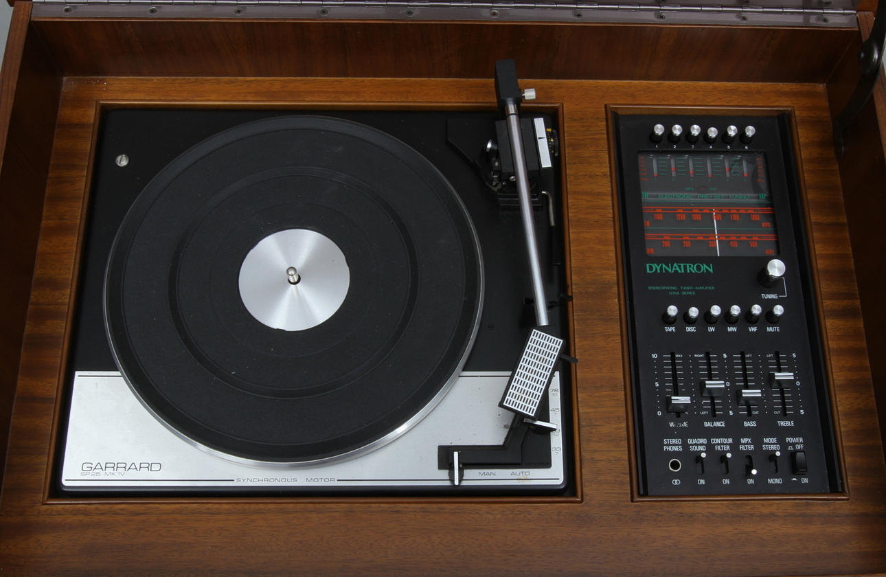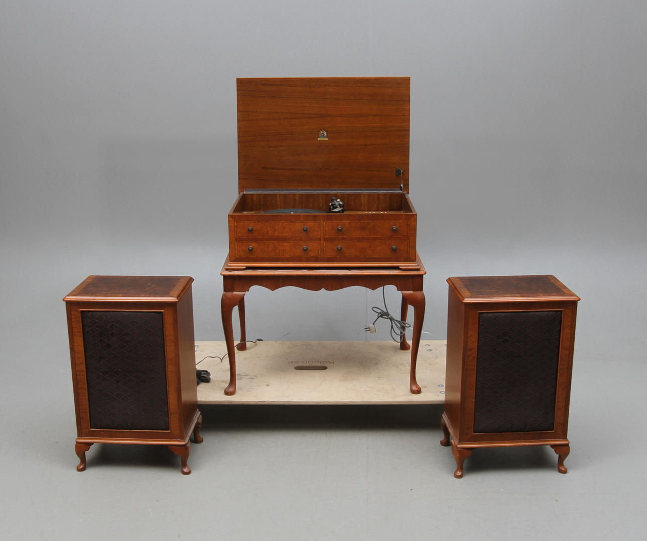 Skivspelardelens längd 68, bredd 48, total höjd 65 cm, högtalarnas höjd ca 58,5 cm.