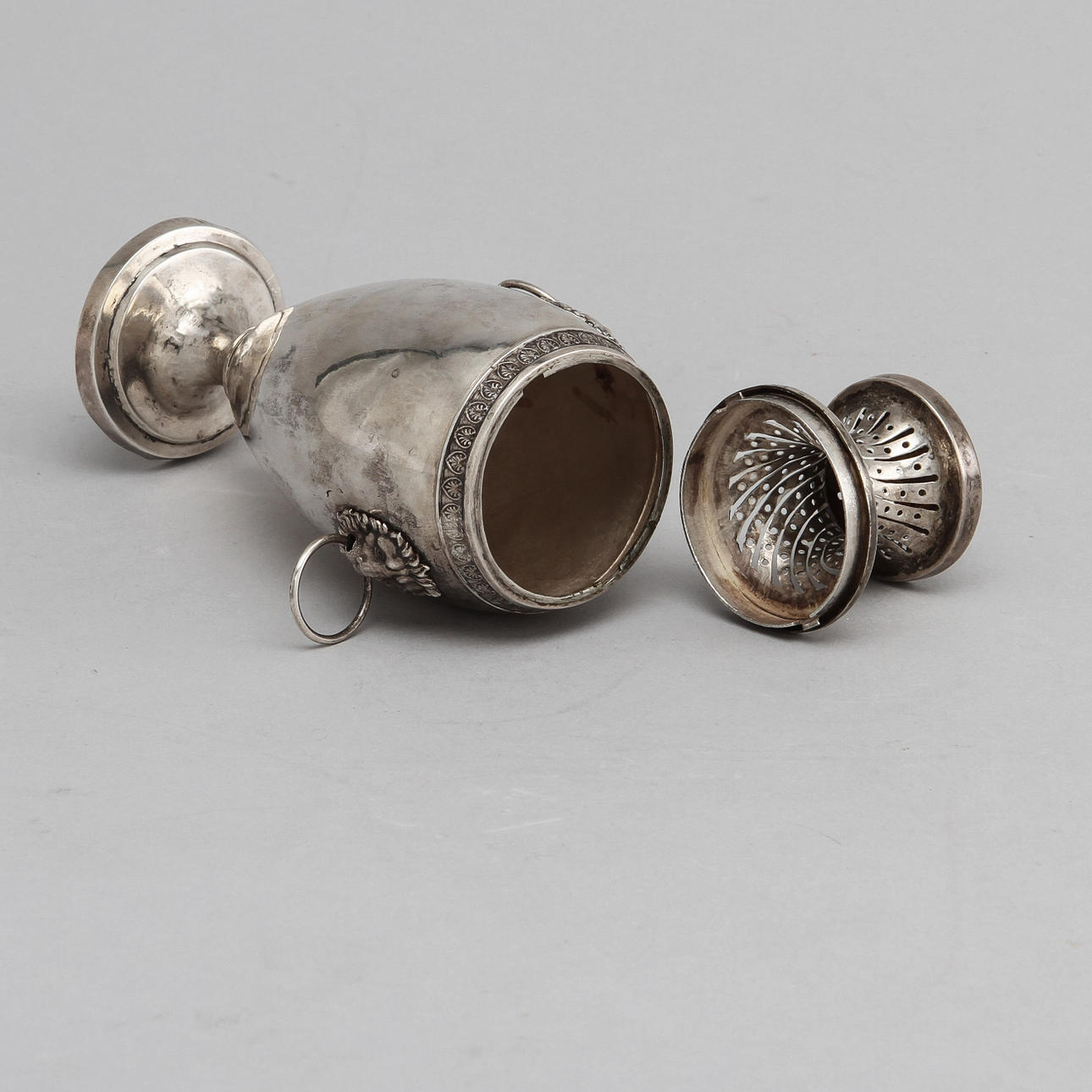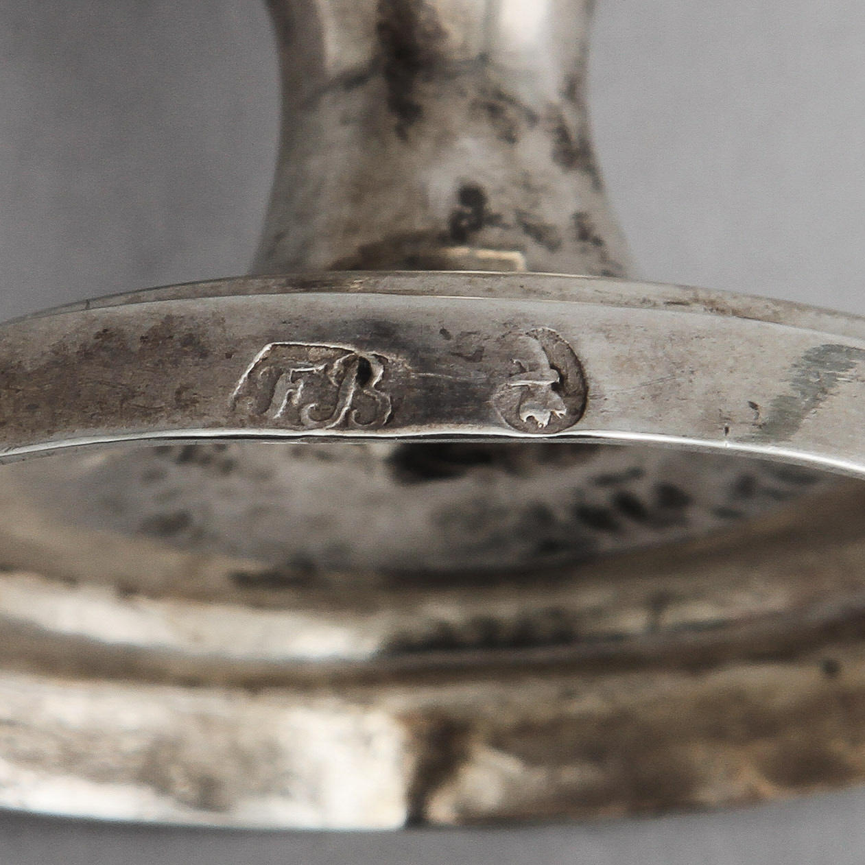 Dekor av lejonmaskaroner. Höjd 15,5 cm. Stämplad FB.