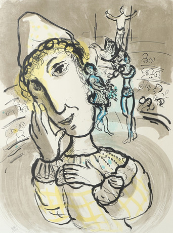 MARC CHAGALL. Efter färglitografi "Le cirque au clown jaune", osignerad, numrerad 324/1000.