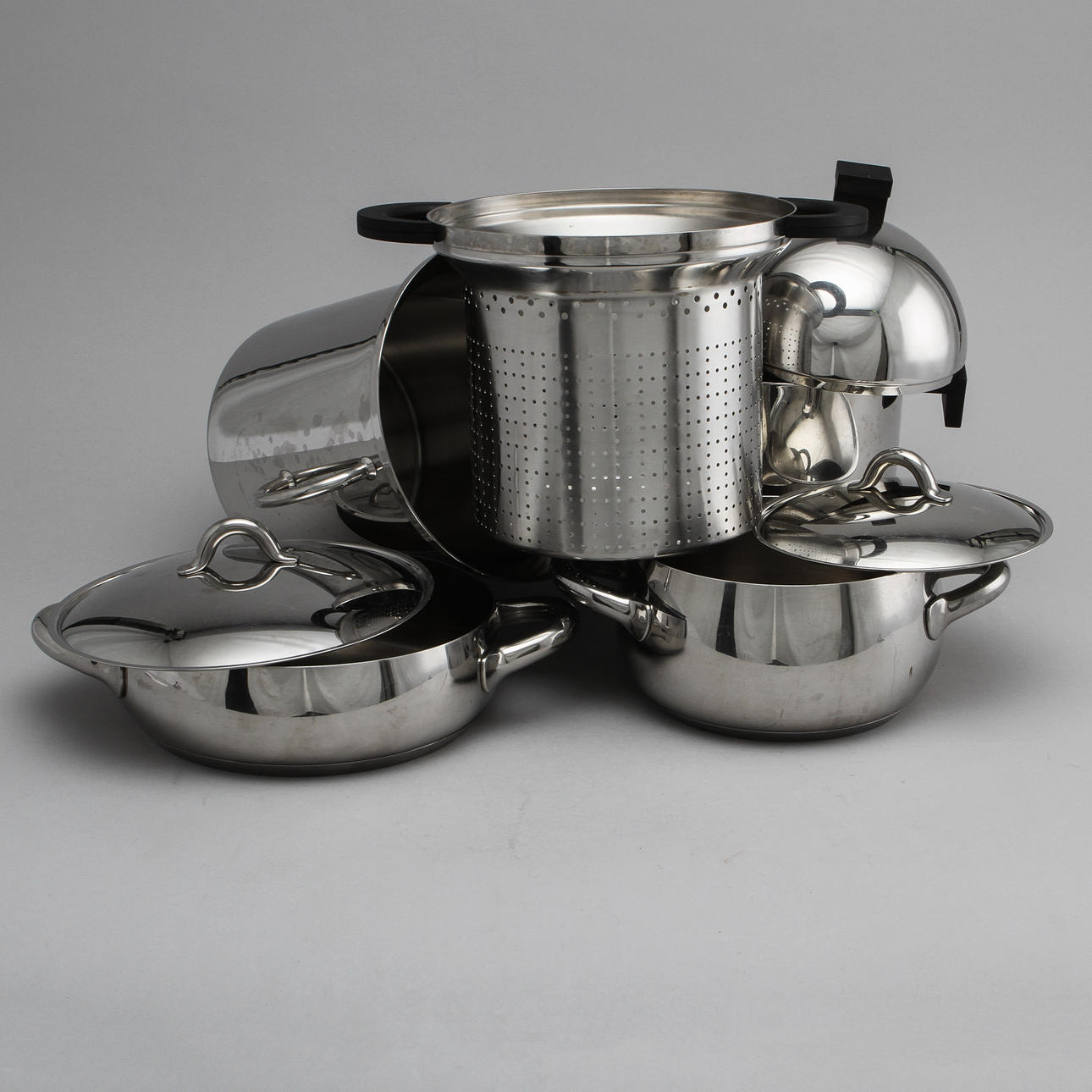 2 st "Mami", diameter 20-24 cm. Pastakastrull, innerdiameter ca 18,5 cm Kastrull med handtag av plast och tjock kopparbotten, diameter 18 cm.