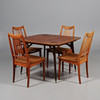 Bord Höjd: 72 cm Bredd: 90 cm Längd: 105 cm + iläggsskivor 42 + 42 cm Stolar Sitthöjd: 42 cm Ryggshöjd: 91 cm Djup :43 cm Bredd 49 cm.