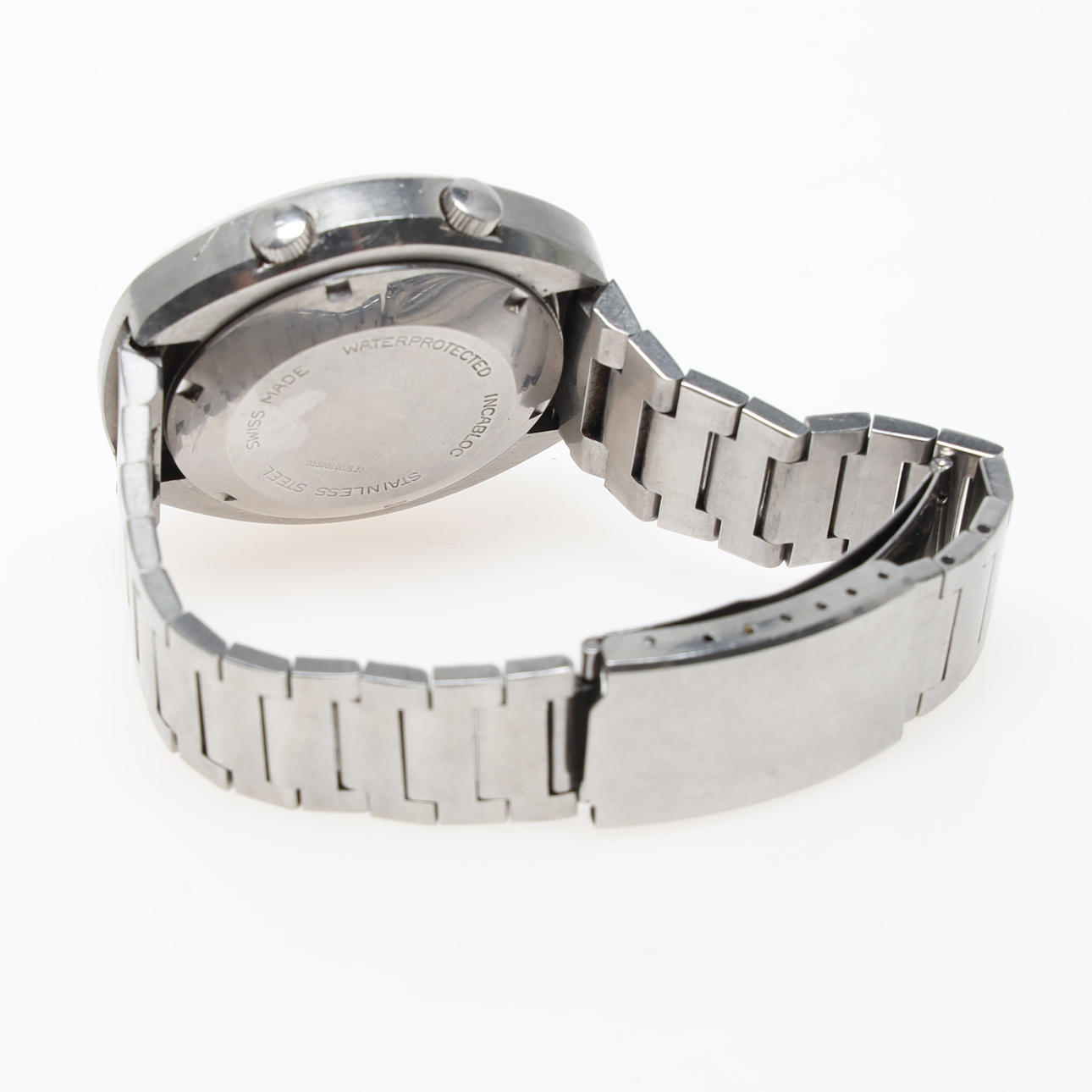 Ljusblå urtavla med index, datum och dag. Larm/väckningsfunktion. Boetten märkt 00.5008.0028.30. B ca 40 mm. Tung, vikt ca 116 gram.