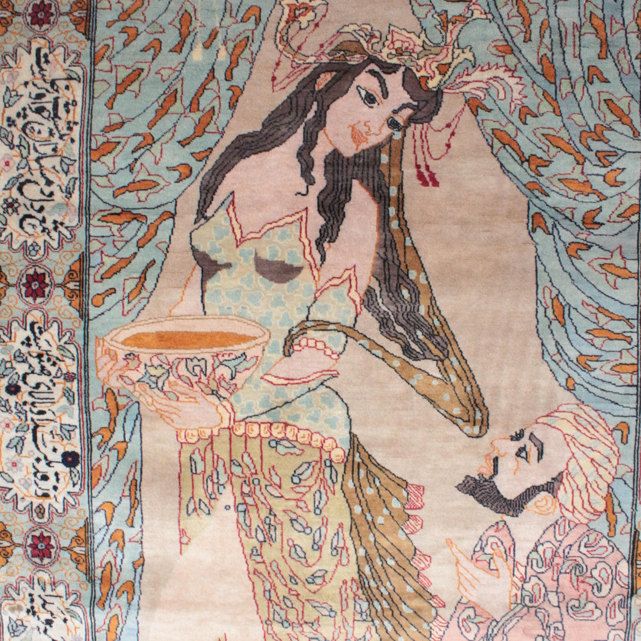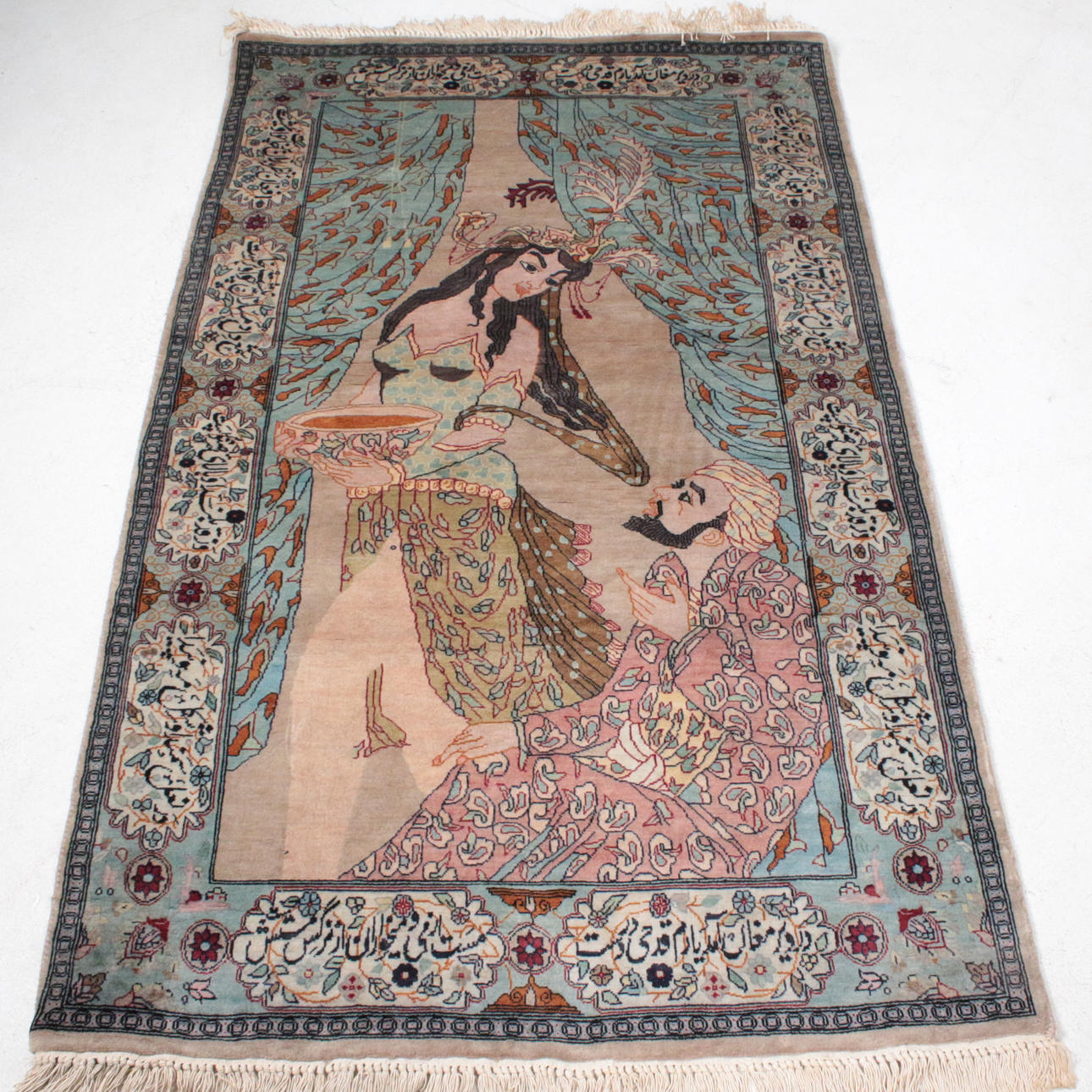 Orientalisk matta med dikt, siden, Mått: 157 x 95 cm.