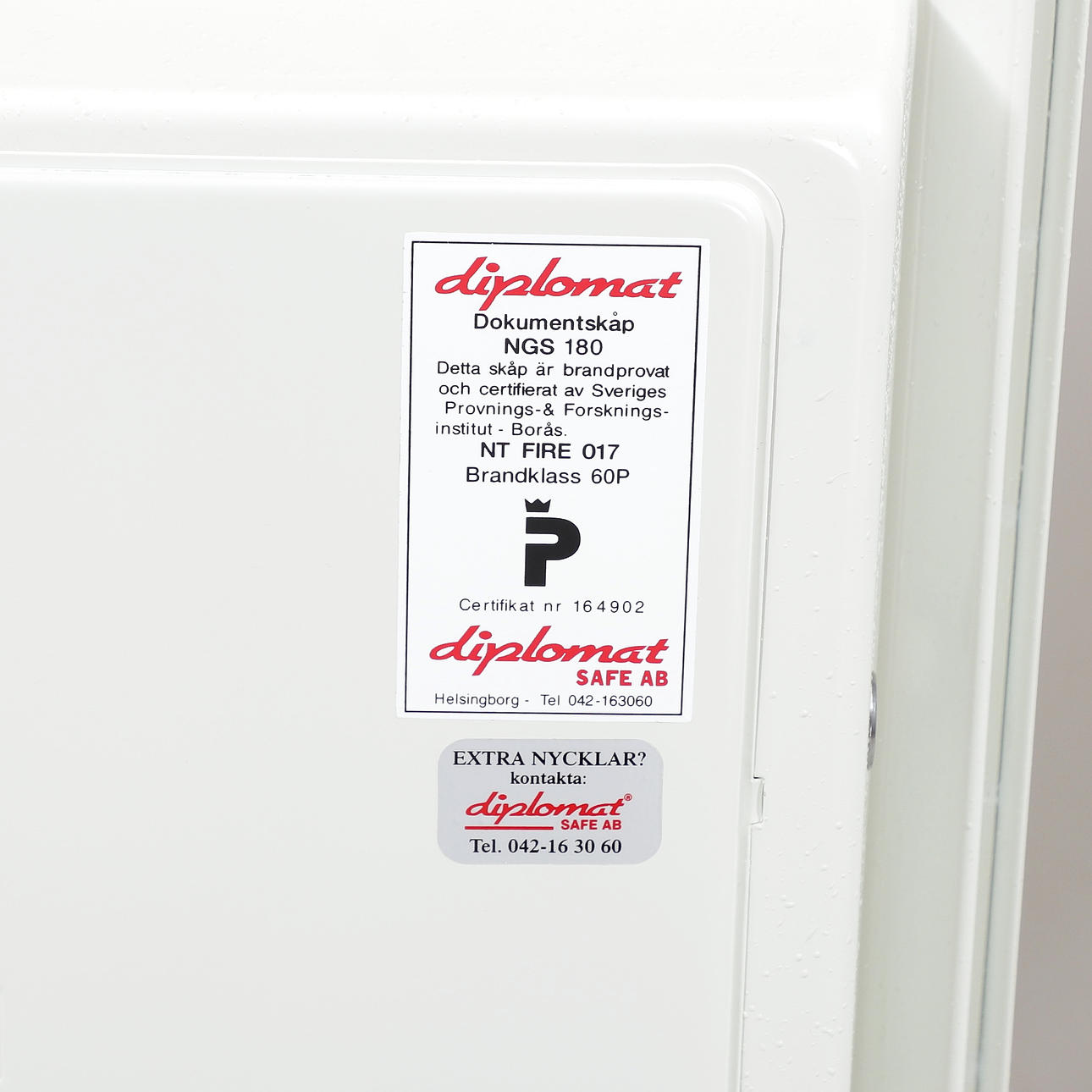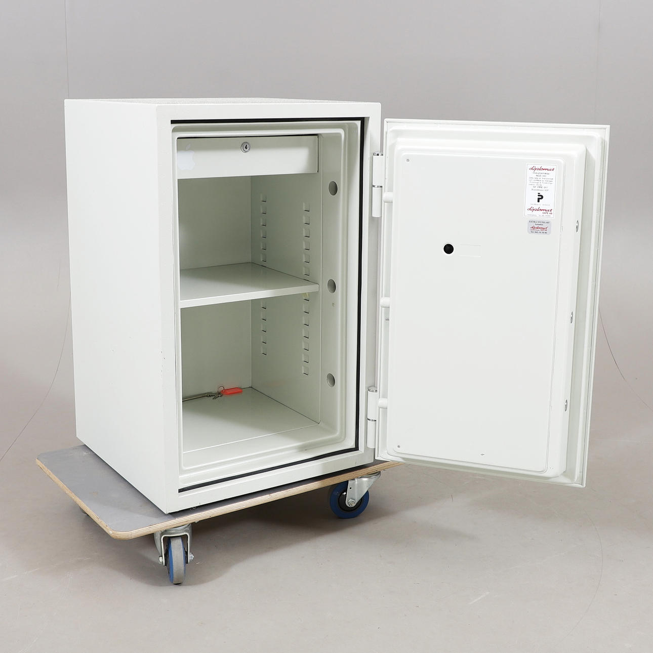 Brandcertifierat 60P, brandklass NT FIRE 017. Höjd 83, bredd 52, djup, 52 cm. 1 st nyckel.