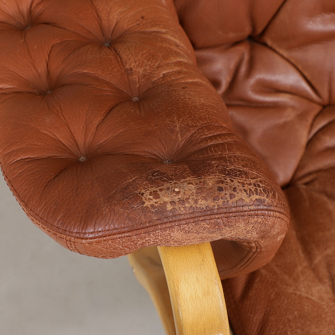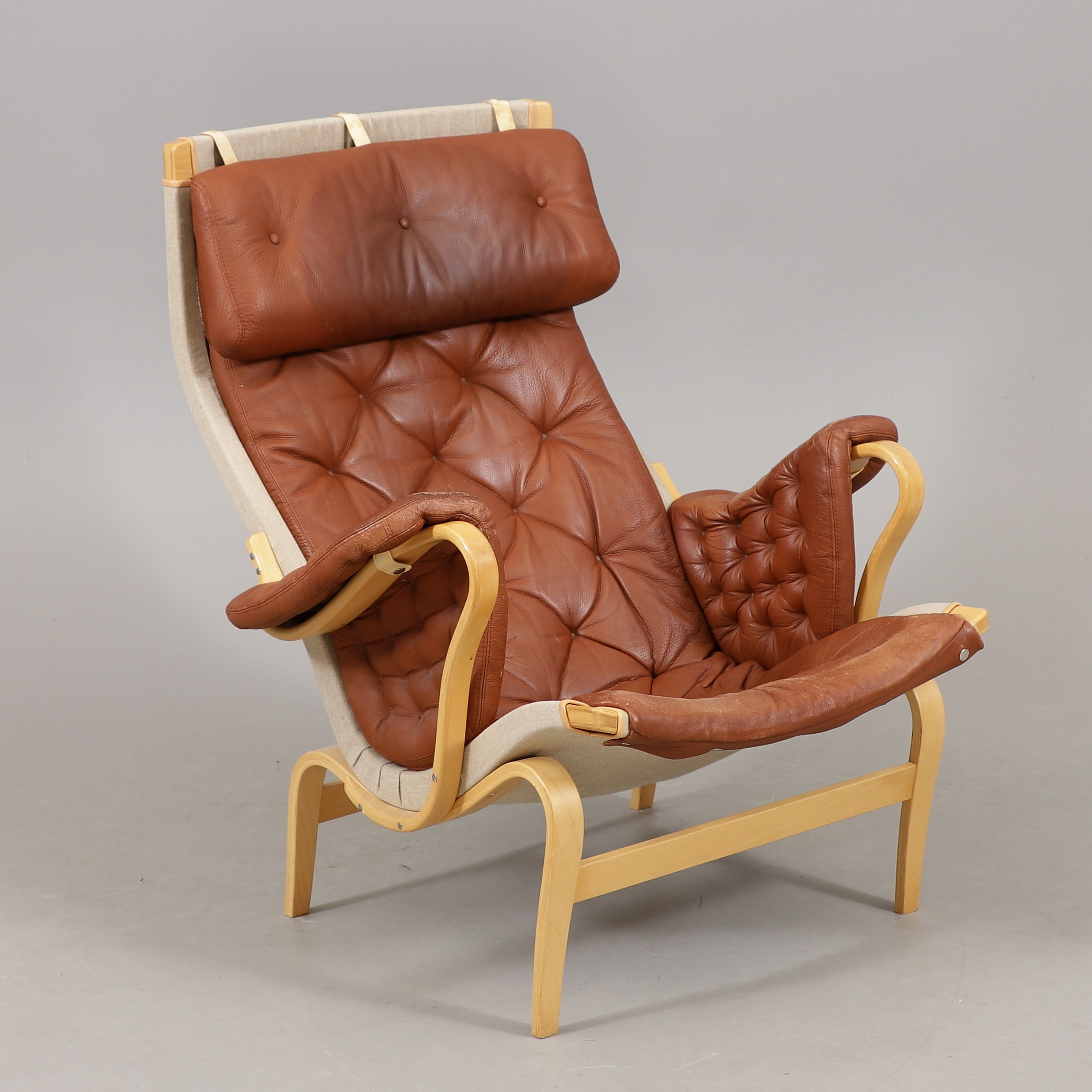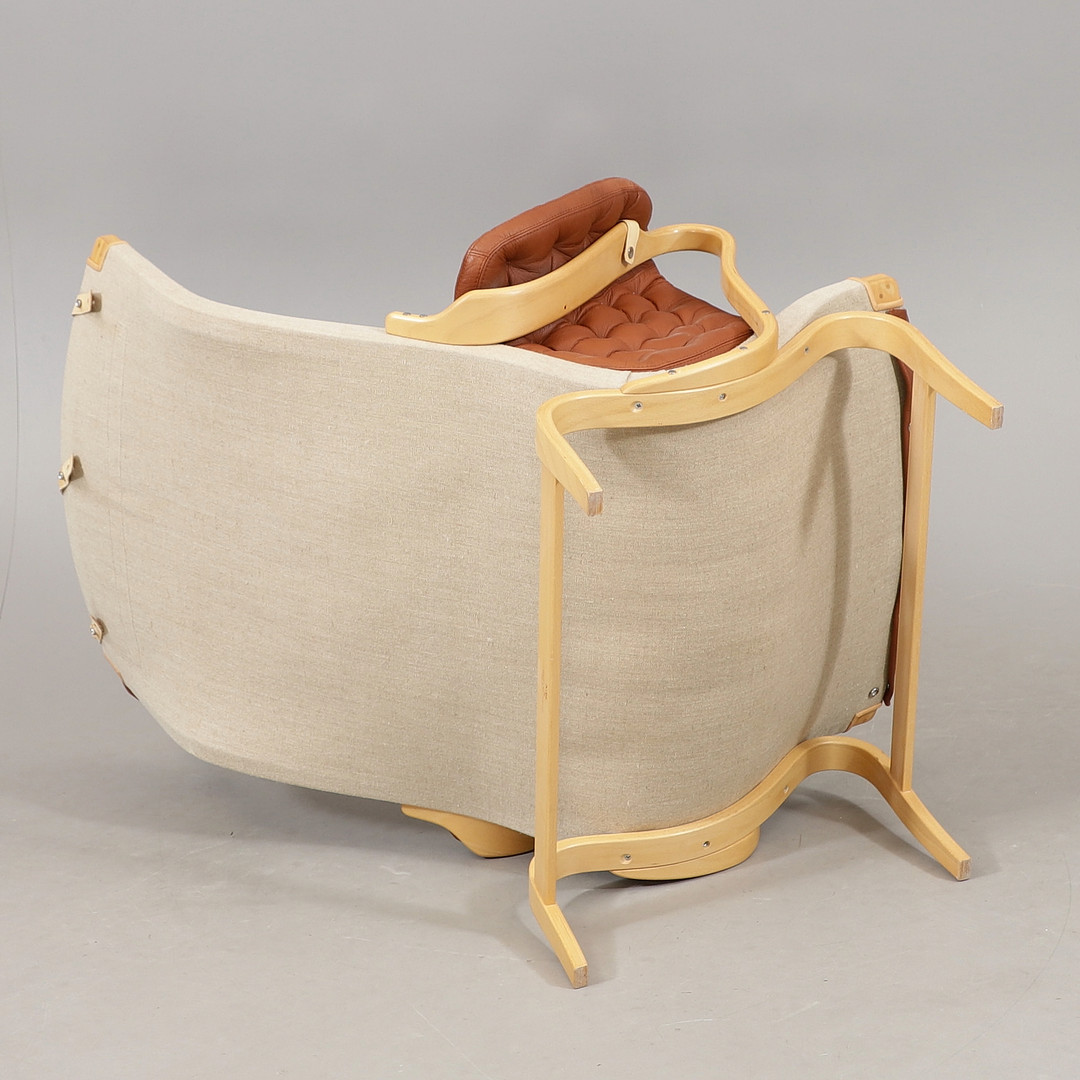 2850498. BRUNO MATHSSON. "Pernilla", fåtölj, läder, för DUX.