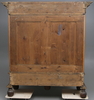 Bonad furu. Dekorerat med rikliga listverk. Nyckelskylt och draghandtag av gjuten mässing. Nyckel finns. Delbart. Längd 200, bredd 74, höjd 213 cm.