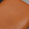 Klädd i brunt läder, lösa plymåer, rygghöjd 104 cm. Pallens höjd 38 cm.