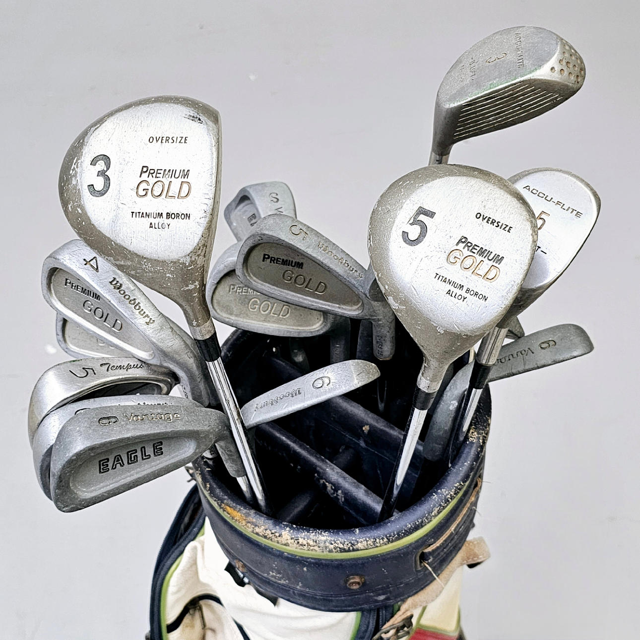Golfklubbor saknas förmodligen, de är de du ser på fotografiet. Olika fel.