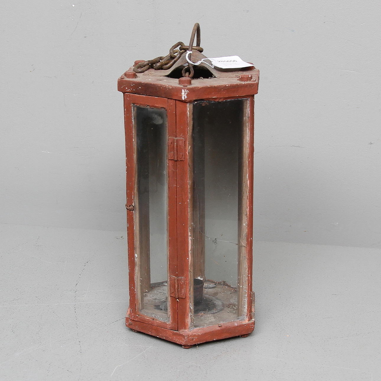 Rödmålat trä. Höjd 35 cm plus kedja 25 cm.