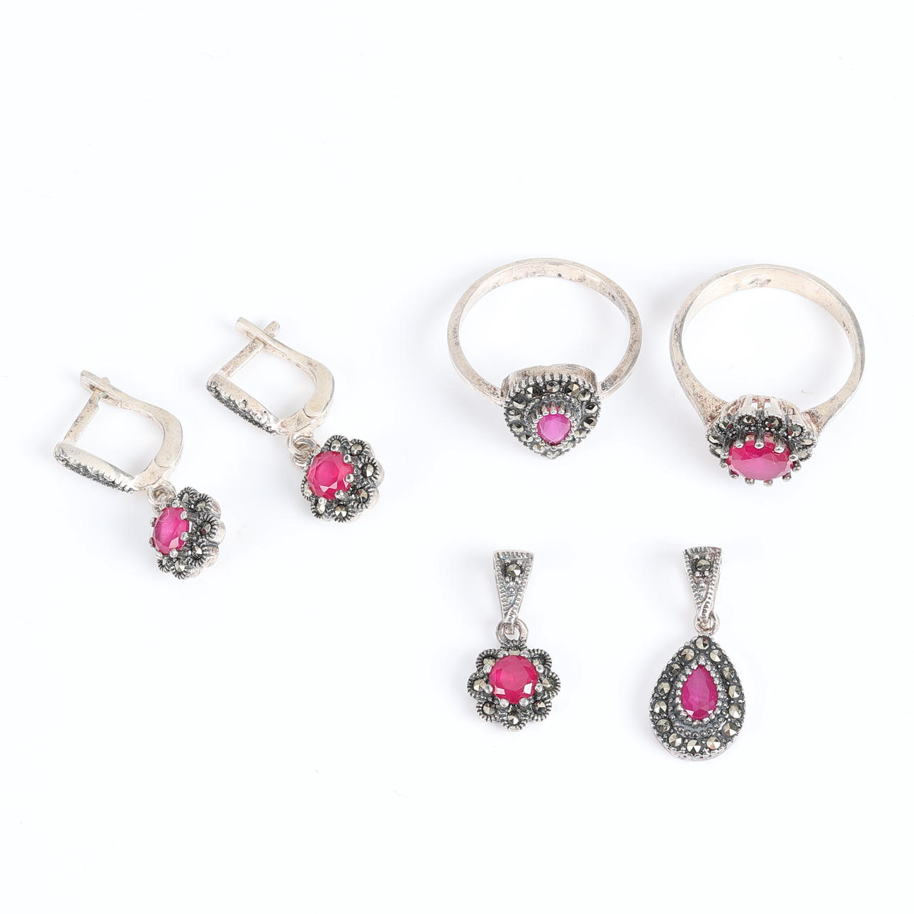 SET MED ÖRHÄNGEN, RINGAR OCH HÄNGEN, i silver.