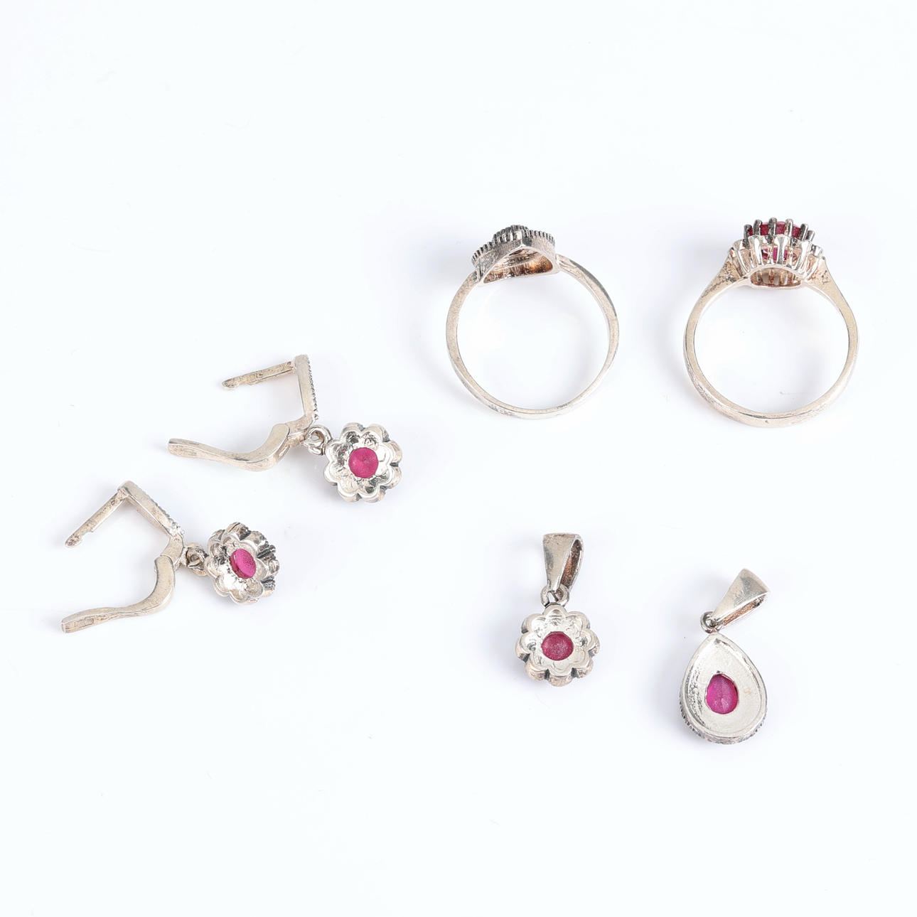 2857029. SET MED ÖRHÄNGEN, RINGAR OCH HÄNGEN, i silver.