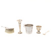 Fritz Heimburger, Köpenhamn 1931, koppen på en spridande cirkulär fot, 5,2 cm hög, fallet, 10cm bred x 14cm djup, en motor vände silvermonterad hårborste, Mappin & Webb, Birmingham 1935, graverad med ett monogram, 18.5cm lång, en silver trumpet form blomvas, Birmingham 1963, 10.5cm hög, laddad bas, och ett barns elektroplatta blad emboliate emboliate ssed mugg, 6,5 cm hög (5).
