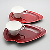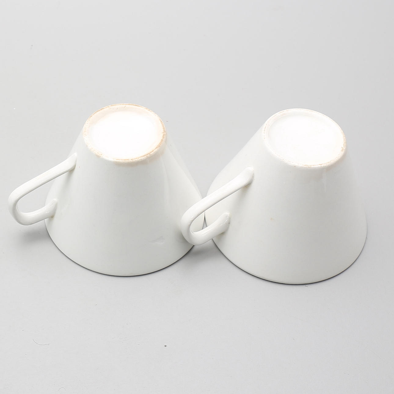 Kaffekanna, möjligen Carl-Harry Stålhane, höjd 16,5 cm. 2 TV-koppar med fat, "Tea", Rörstrand.
