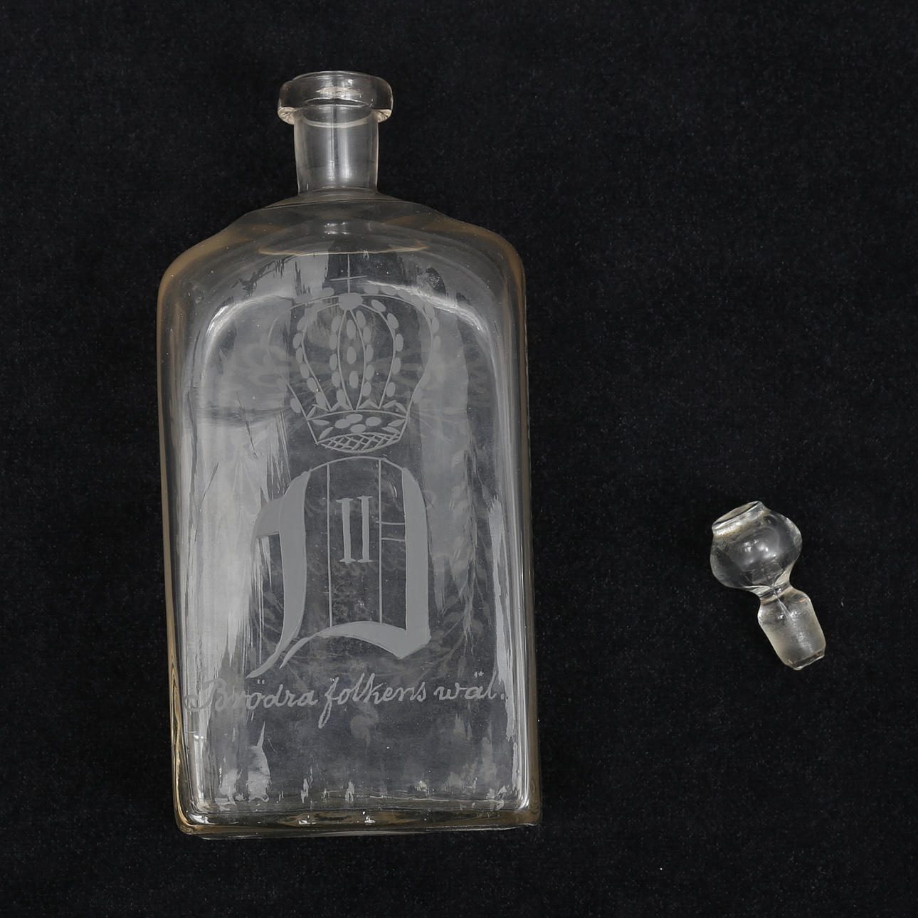 GLAS, 3 delar, karaff och proppflaskor, 1800/1900-tal.