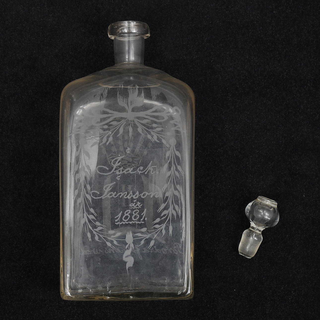 285767. GLAS, 3 delar, karaff och proppflaskor, 1800/1900-tal.