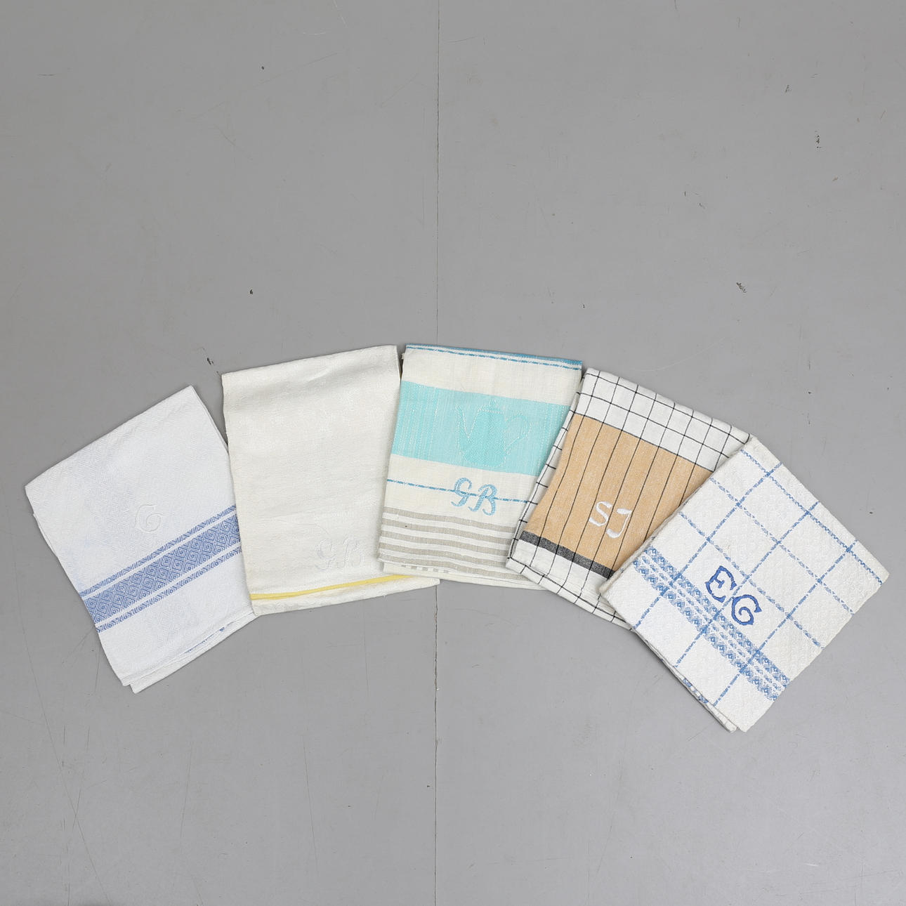 Olika färger, samtliga med monogram.