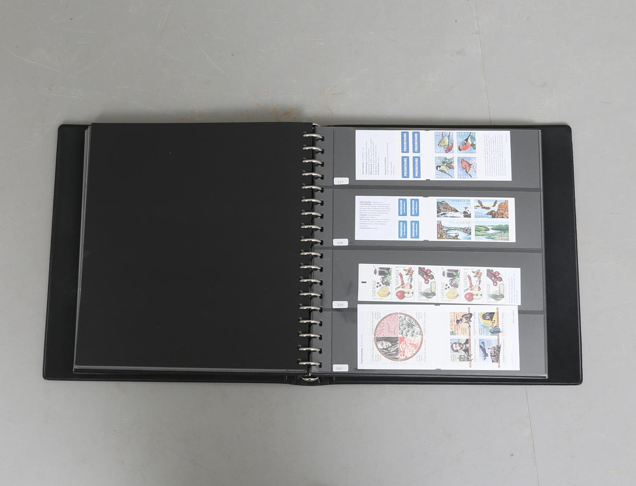 Ligger i plastfickor.