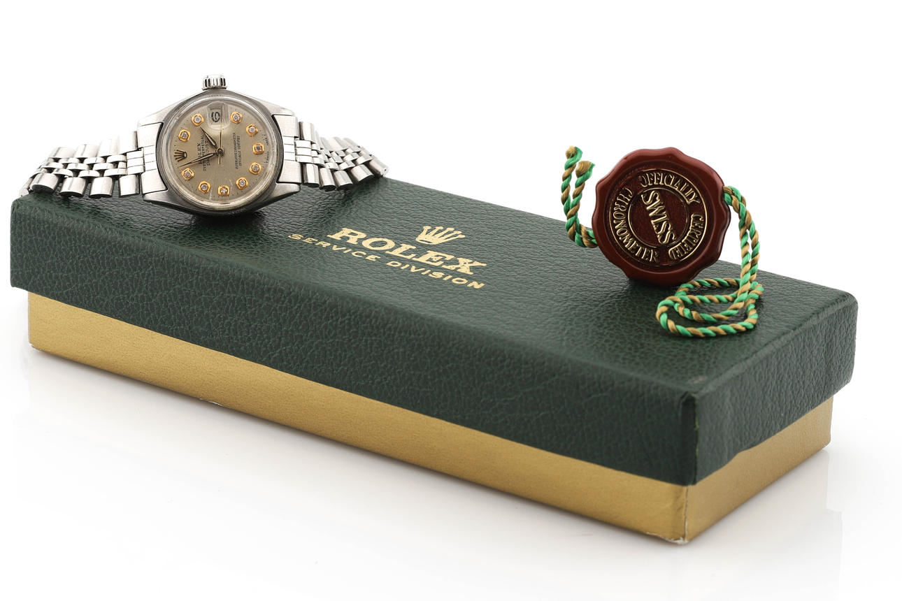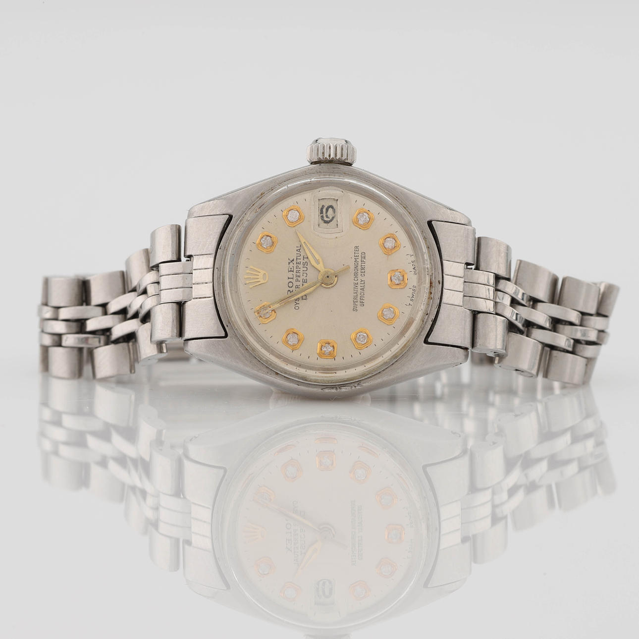 Stål, automatisk, plexiglas, datum, referensnr 6517, serienr 1654015, länkreferensnr 62510, servicebox, hängetikett, 2 extra länkbitar medföljer, innermått 14,5 cm, boettens diameter 25 mm.