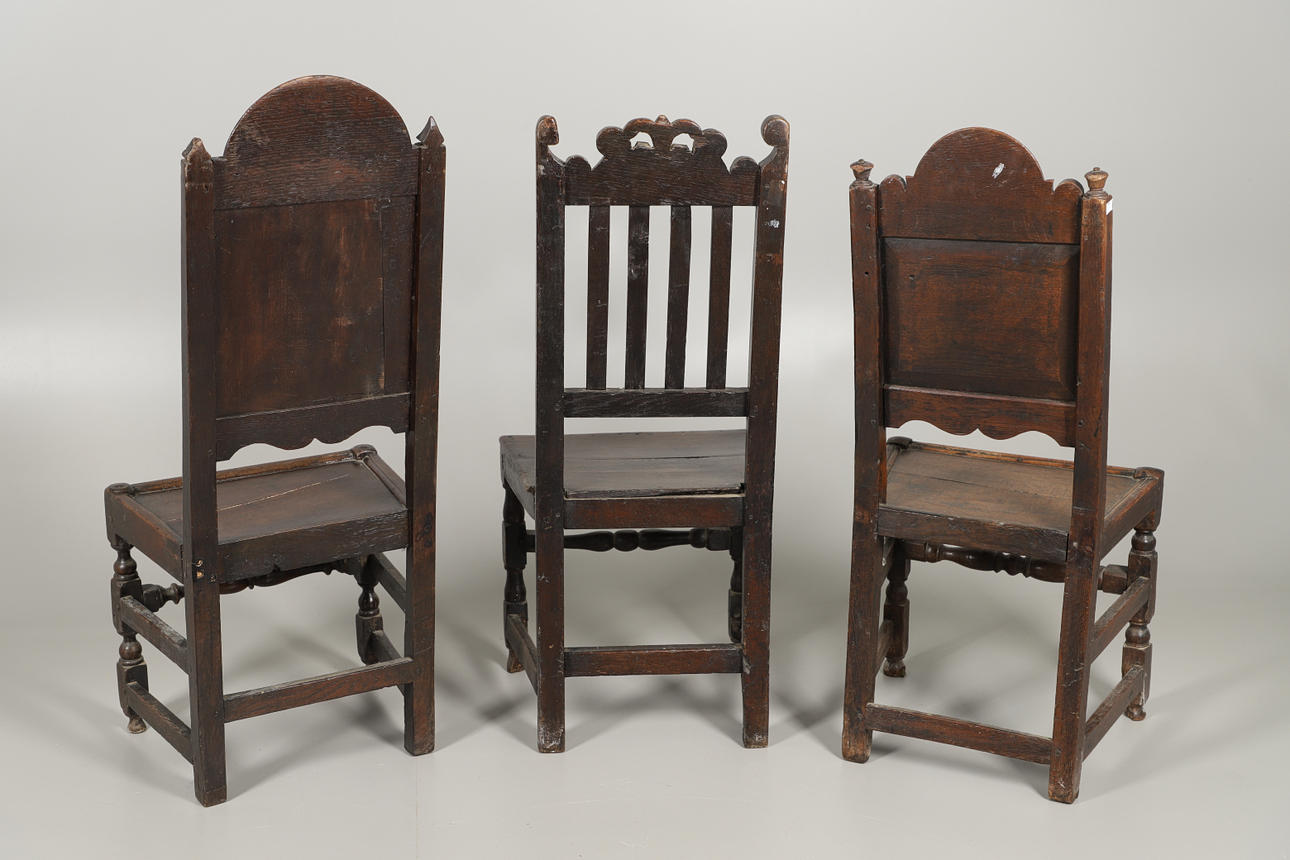 Alla tre med olika sniderier. höjd av högsta stol 112cm och sitthöjd 43cm.