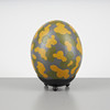 Målat strutsägg i kamoflagefärger med botten i metall, höjd 18 cm.
