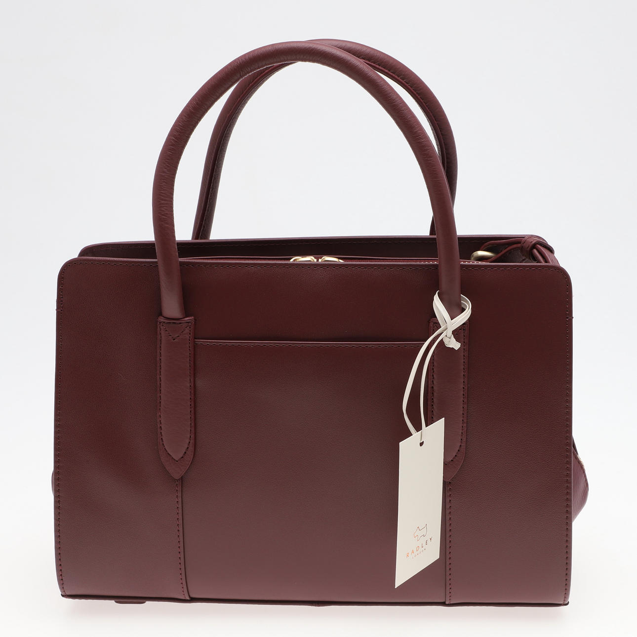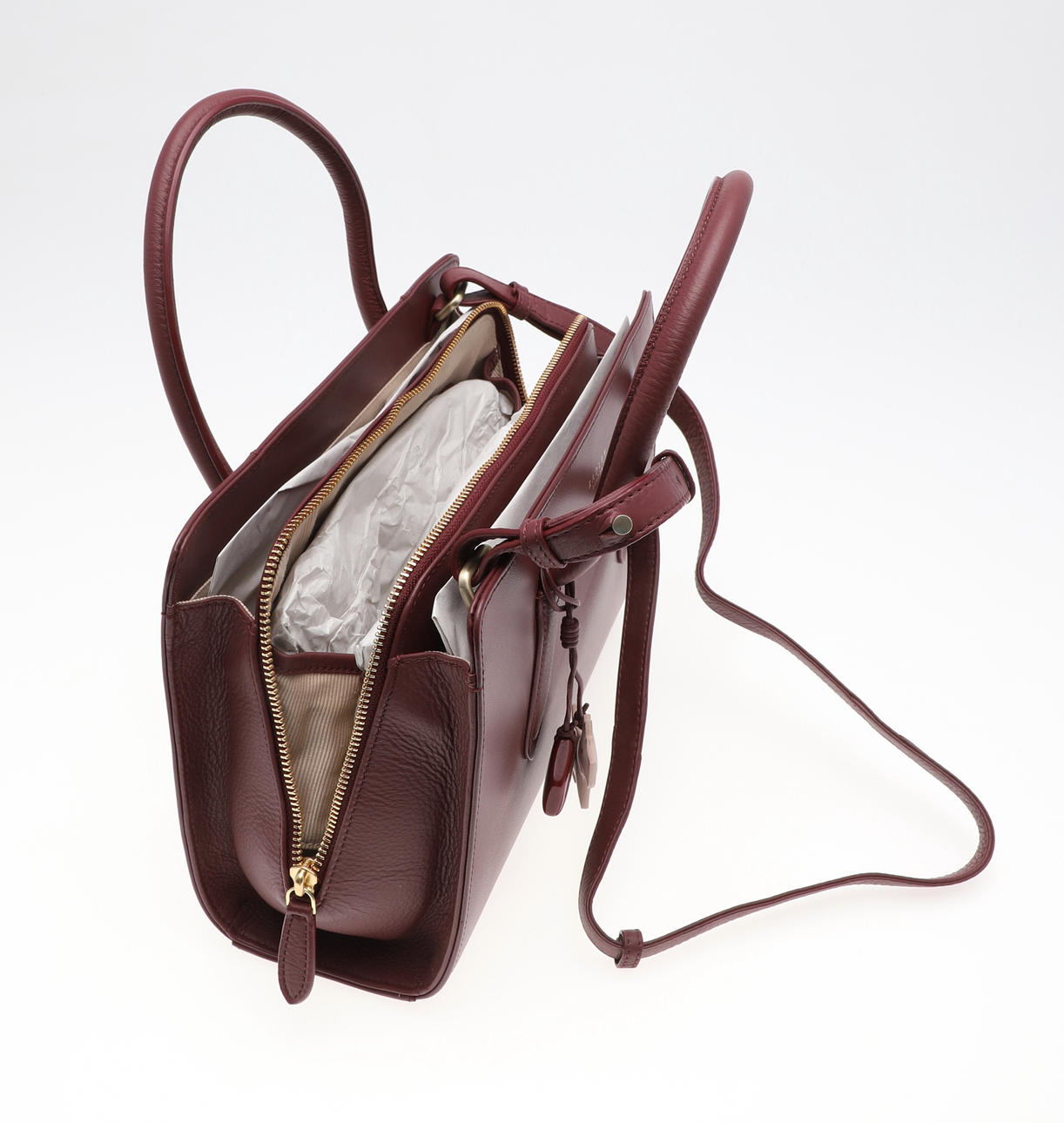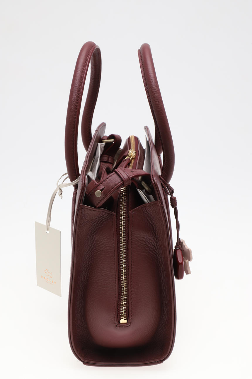 i mörk körsbär, med axelrem, rosa dammpåse, original återförsäljarens etikett och taggar, 33cm hög x 33cm bred.
