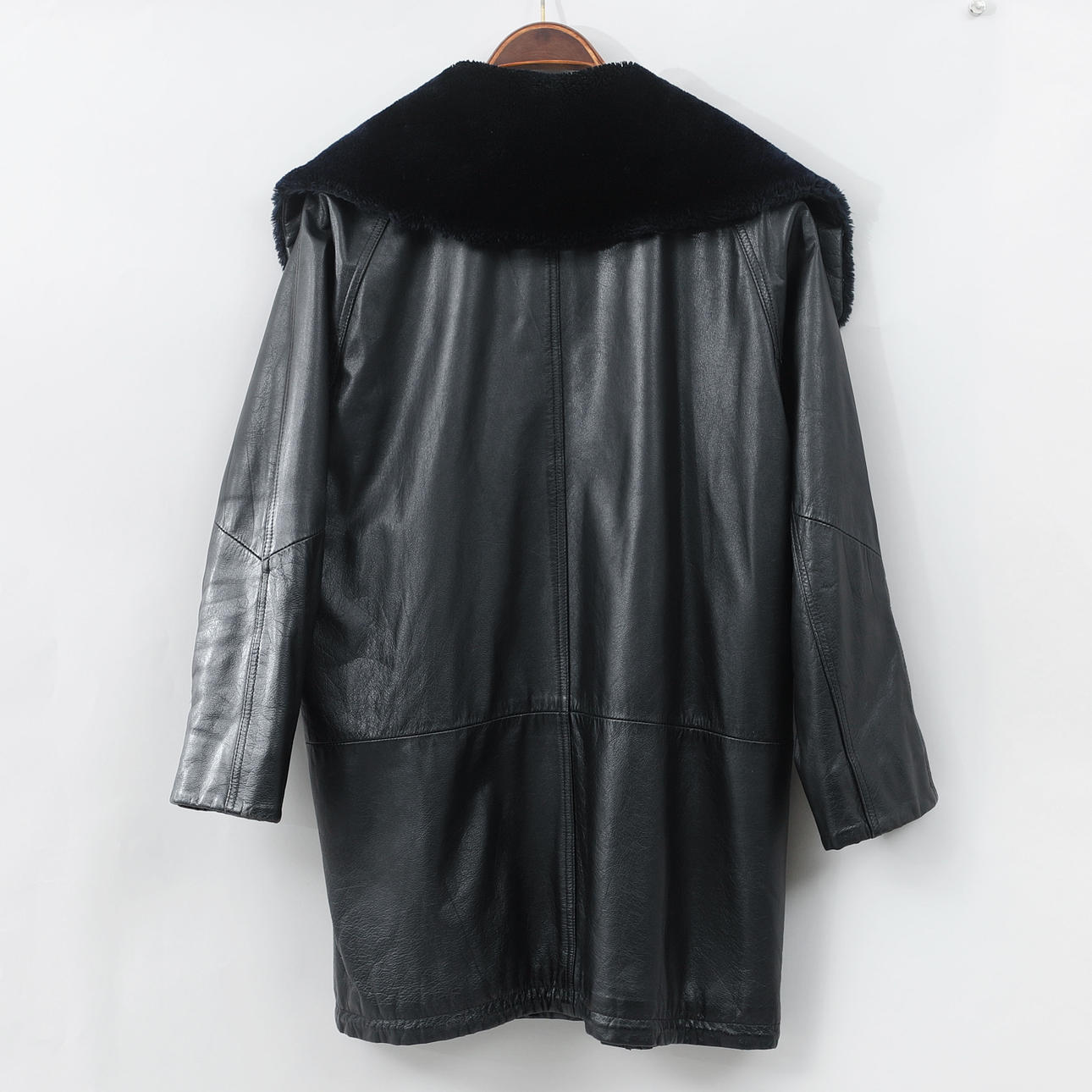 Skinnjacka. Bystvidd ca 118 cm. Rygglängd ca 86 cm. Ytterärmslängd 52 cm.