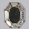 Glas och blommor i ramverk. Höjd 52 cm, bredd 41 cm.