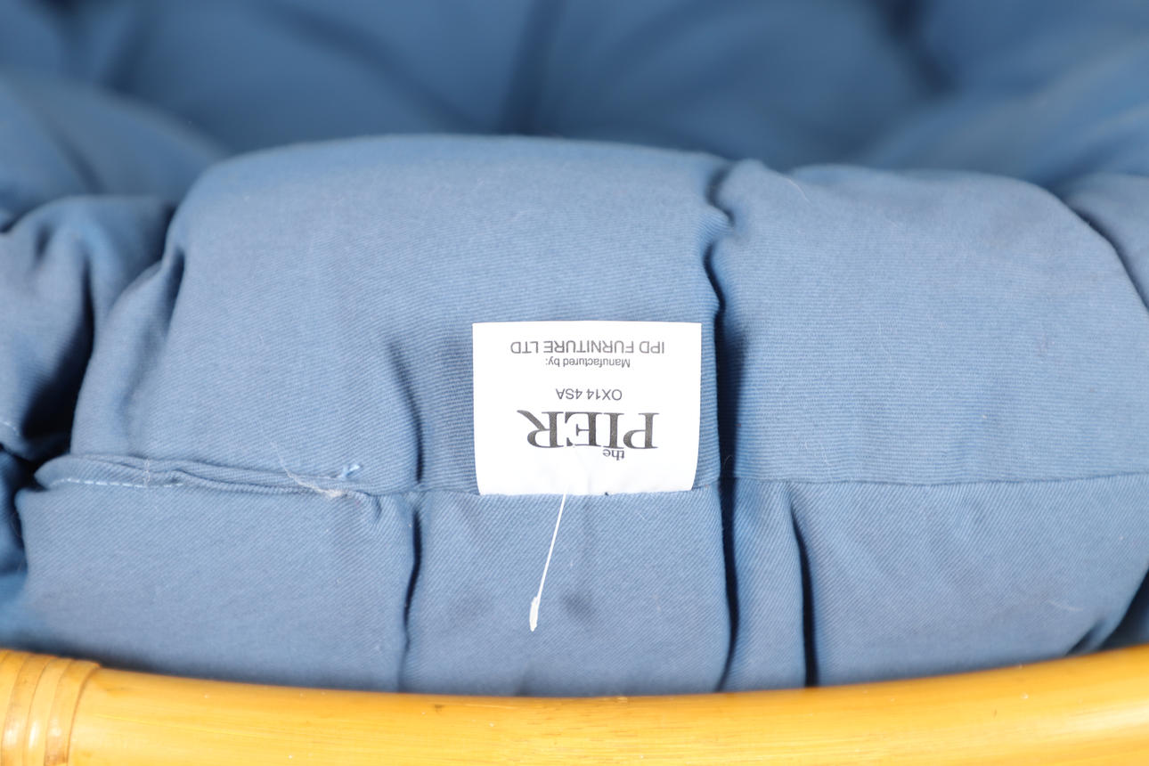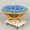 Med en blå kudde, höjd 55cm, diameter 106cm.