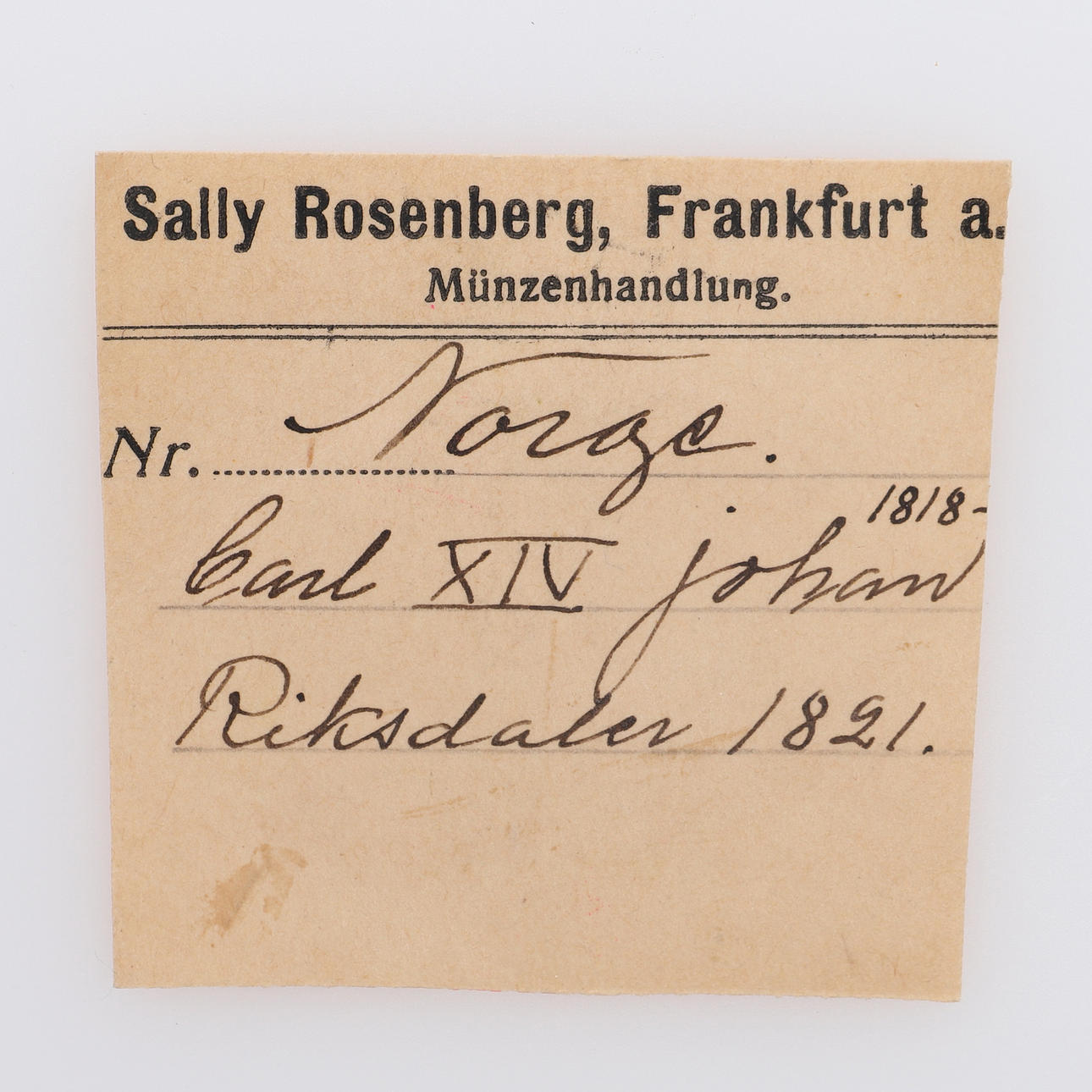 Proveniens: köpt av ägarfamiljen hos mynthandlaren Sally Rosenberg i Frankfurt am Main på 1920/30-talet.