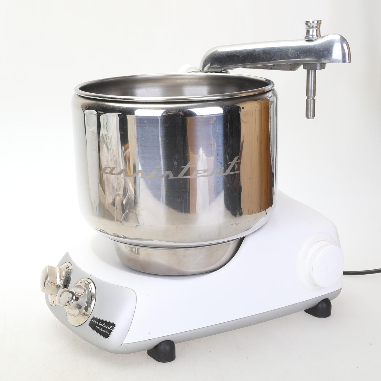 Hushållsmaskin, assistent, med tillbehör så som köttkvarn och passertillsats.