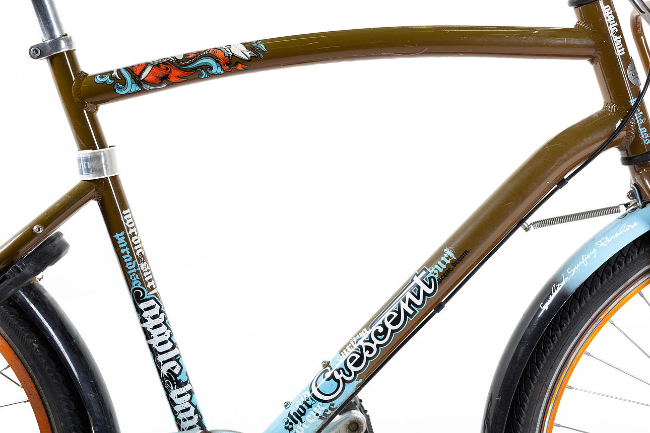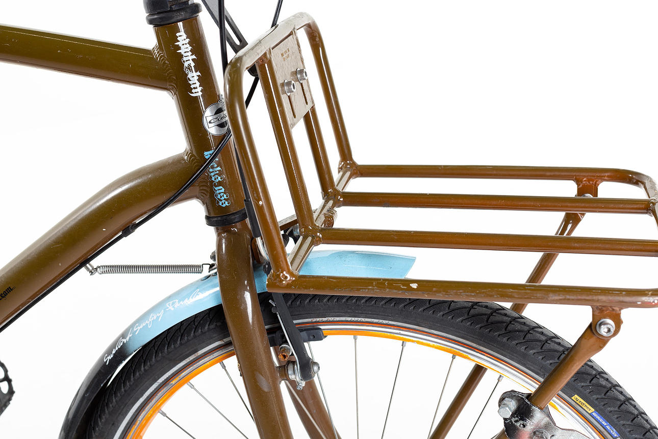 Normalt bruksslitage, smuts, mindre märken förekommer, delvis något solblekt. En eker lös i bakhjulet. Funktionstest: OK.