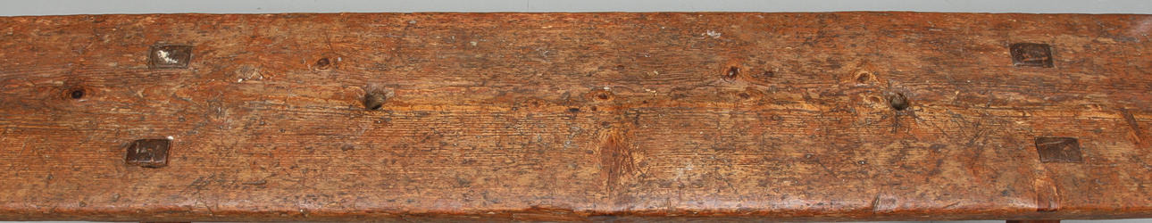 Delvis rödmålad, svängda ben, längd 176 cm.