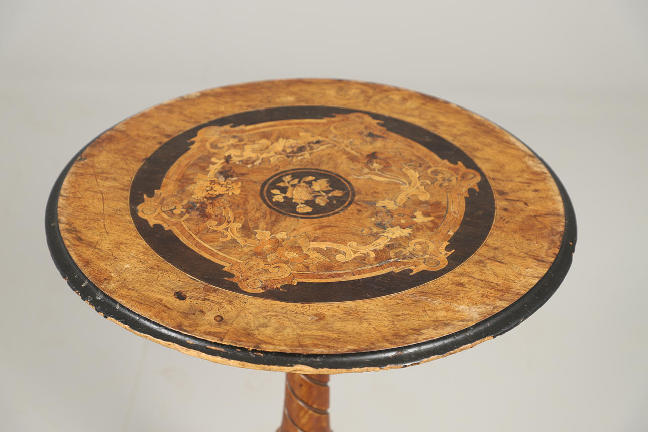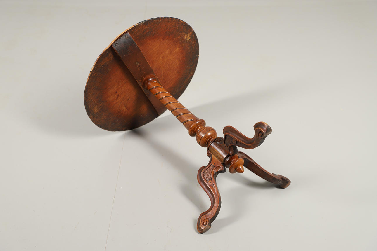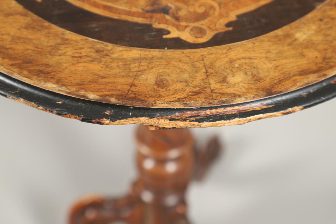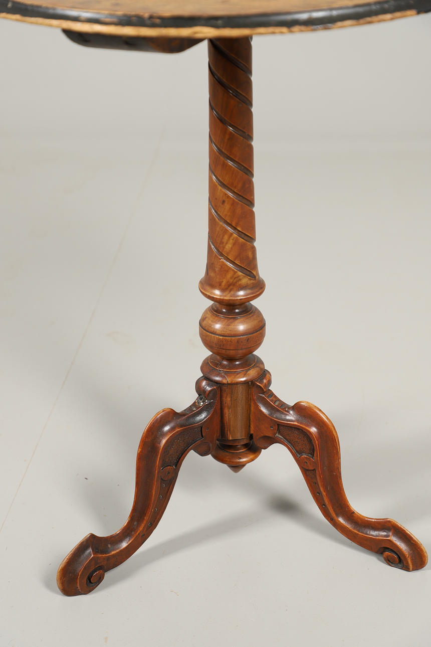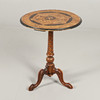 Med en inläggningar inläggningar övre ytan, på en snidad tvinnad effekt kolonn och snidade stativben. Höjd 64cm x Diameter 51cm.